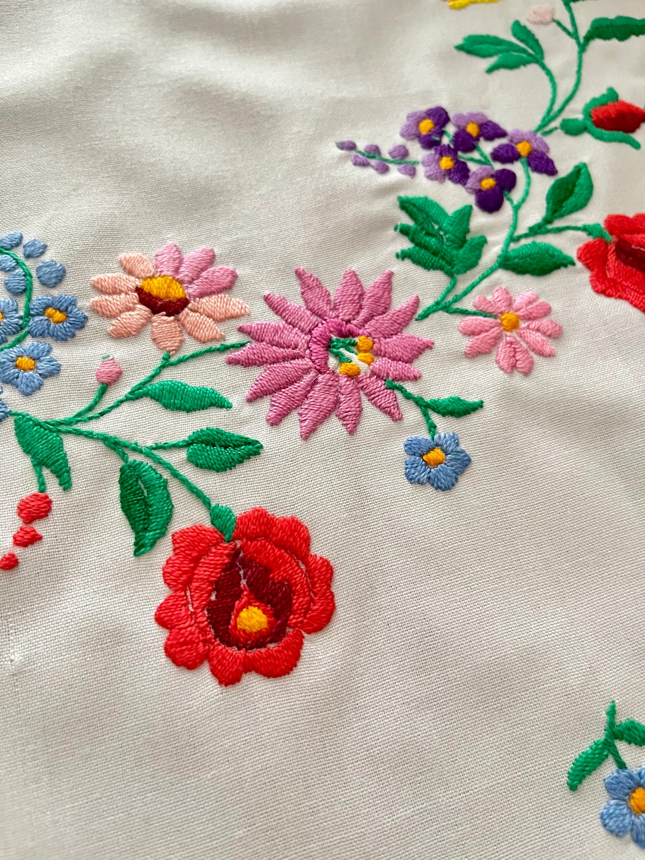カロチャ刺繍の可愛らしさがたっぷり詰まっています。