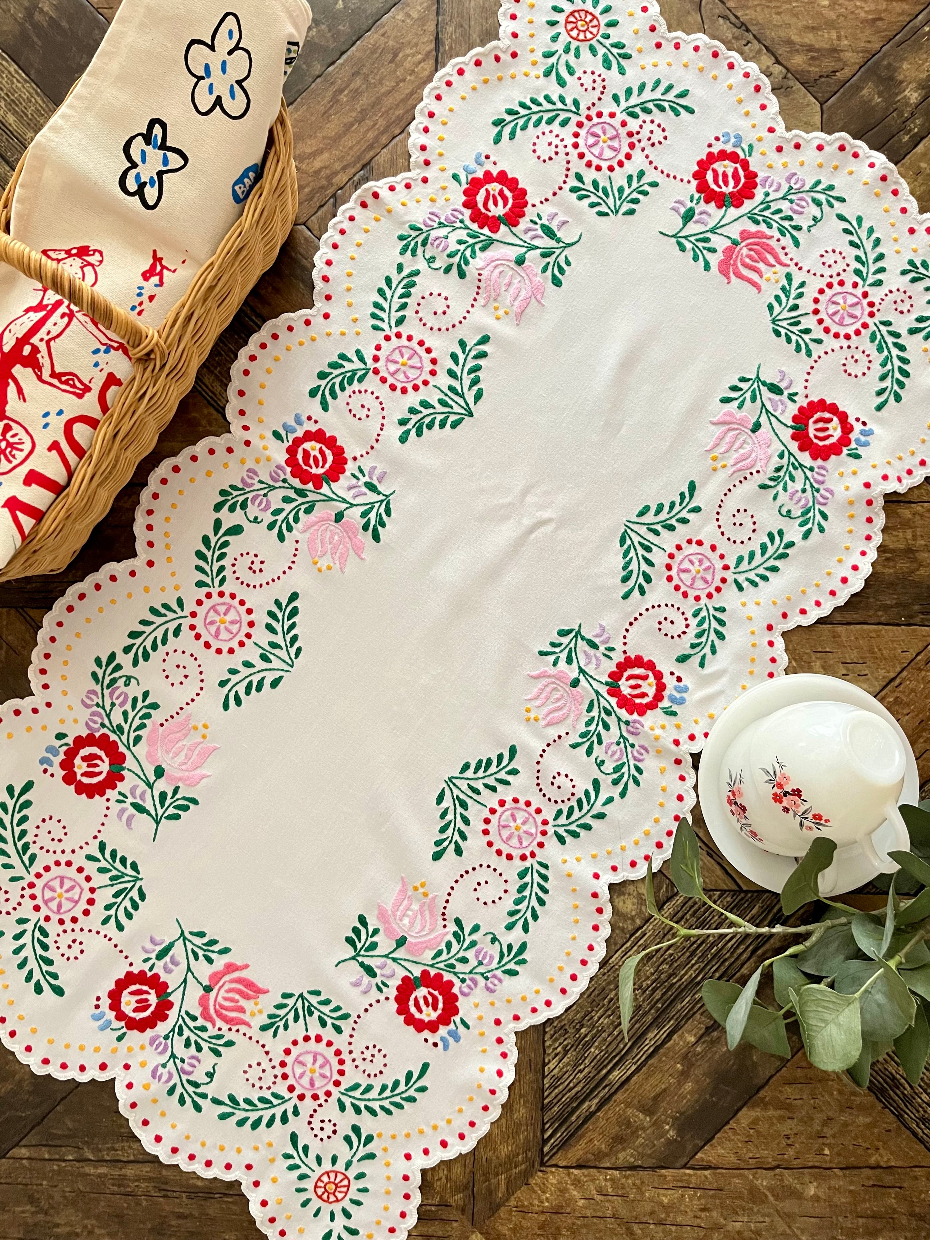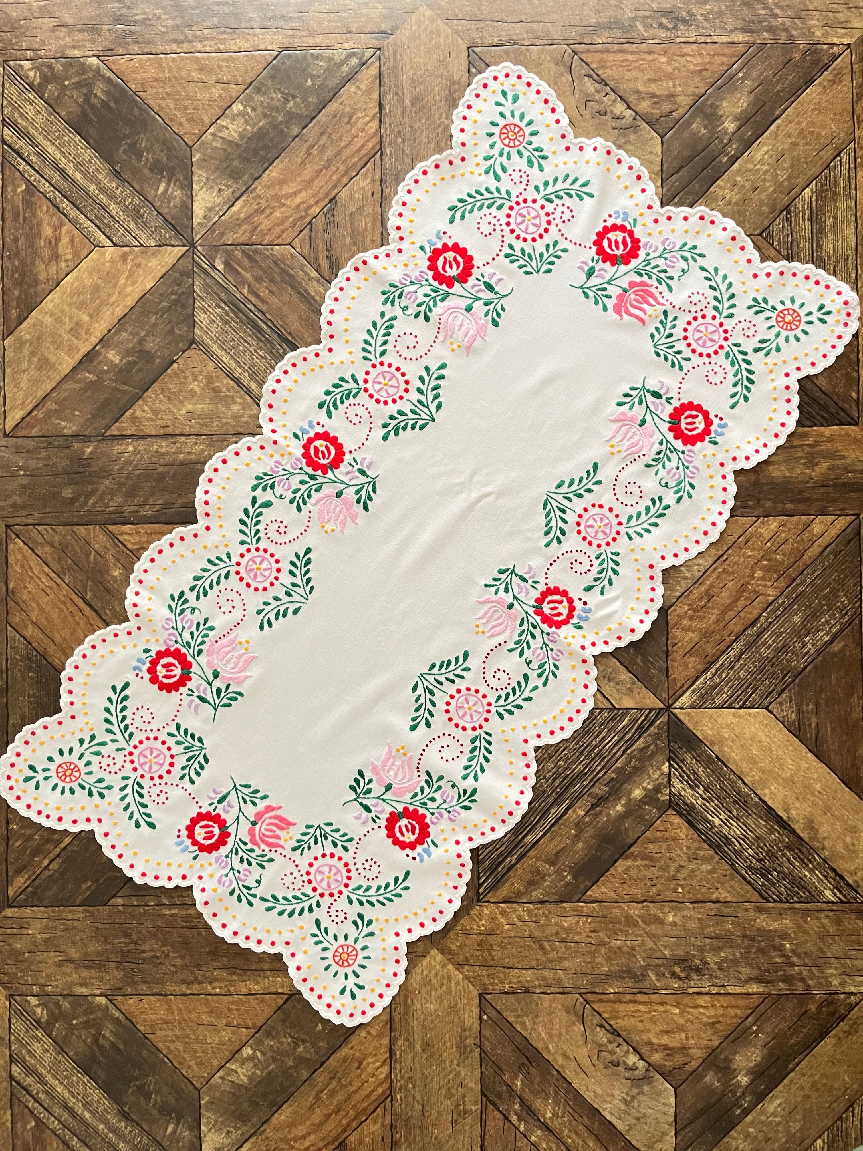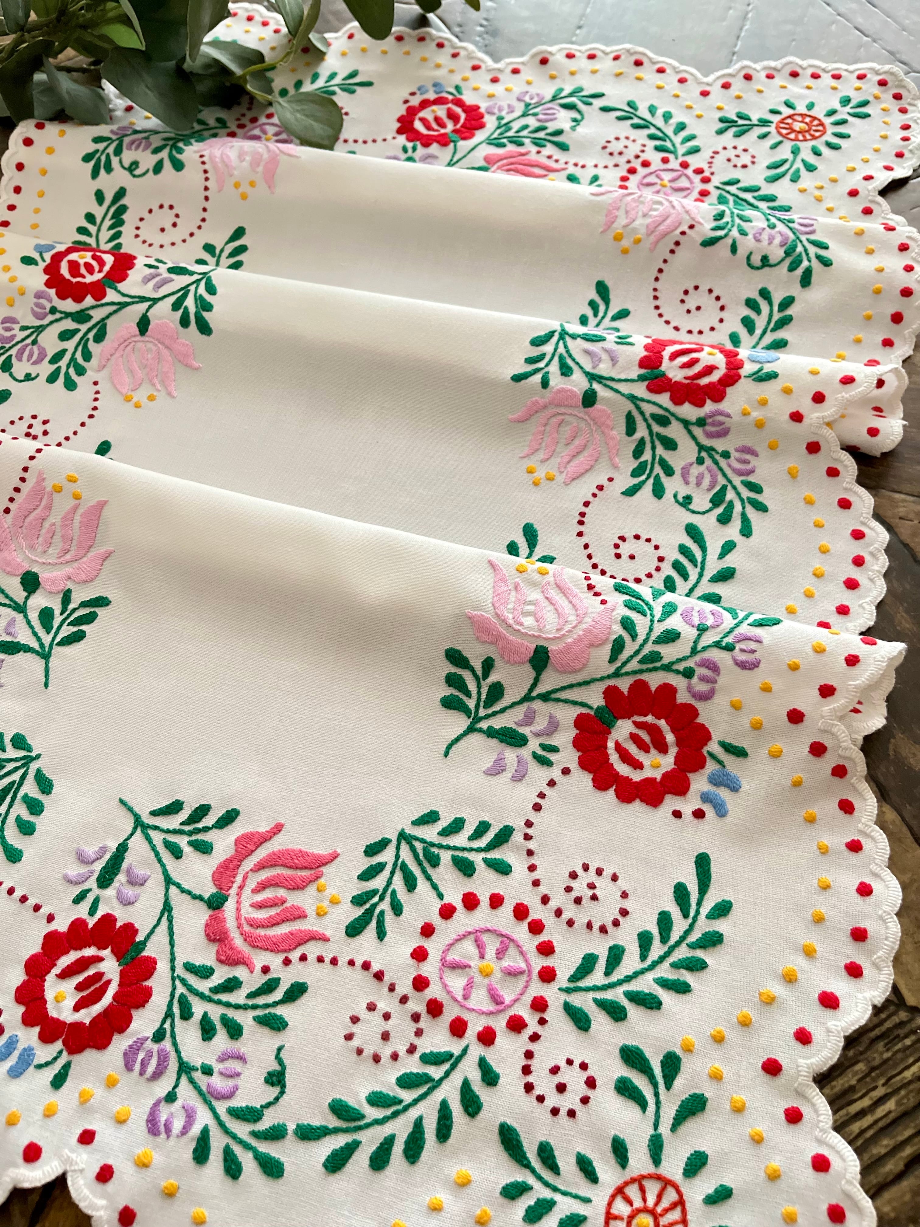 オールドカロチャのテーブルランナー ヴィンテージカロチャ刺繍 86.5×44 cm