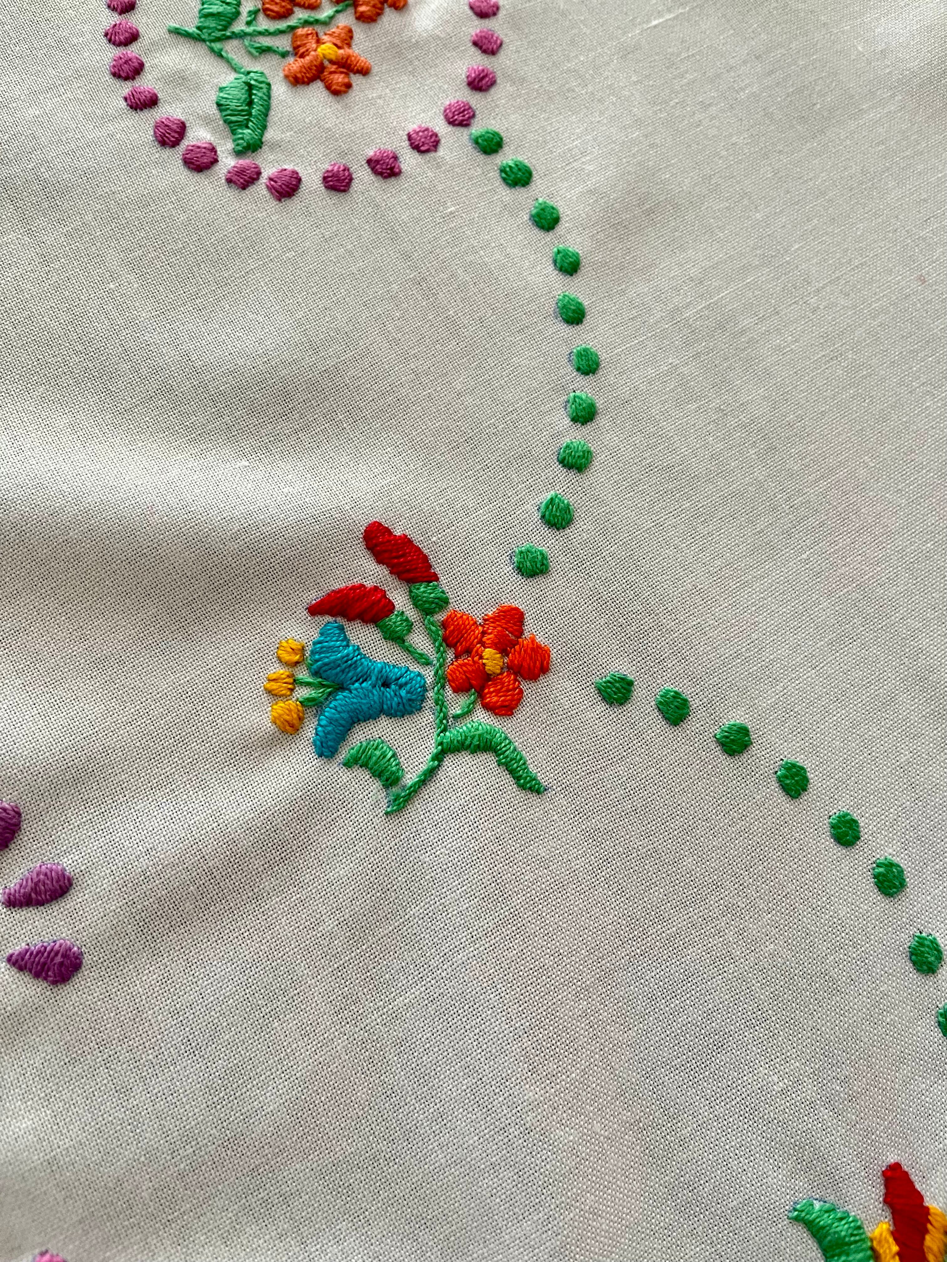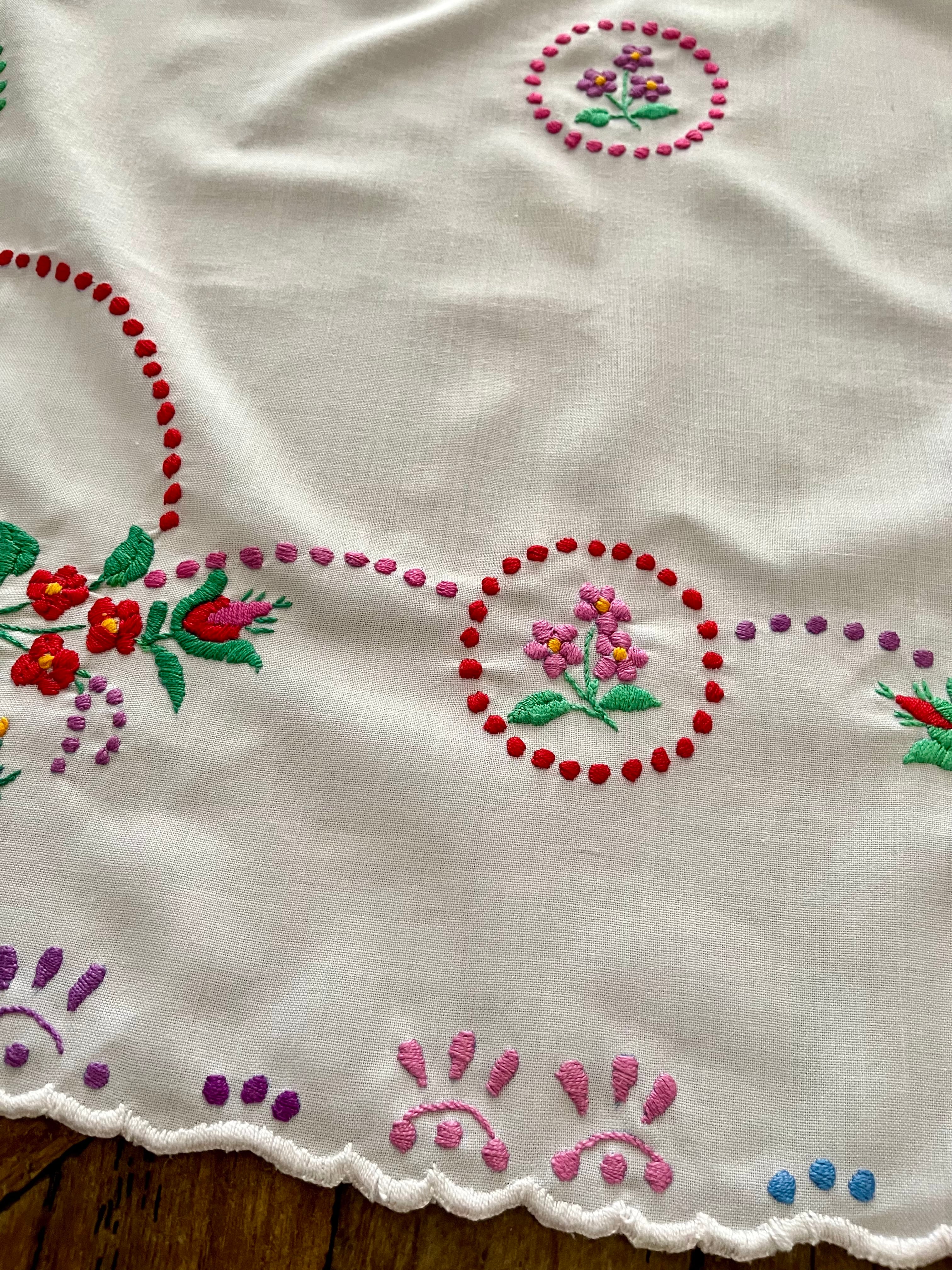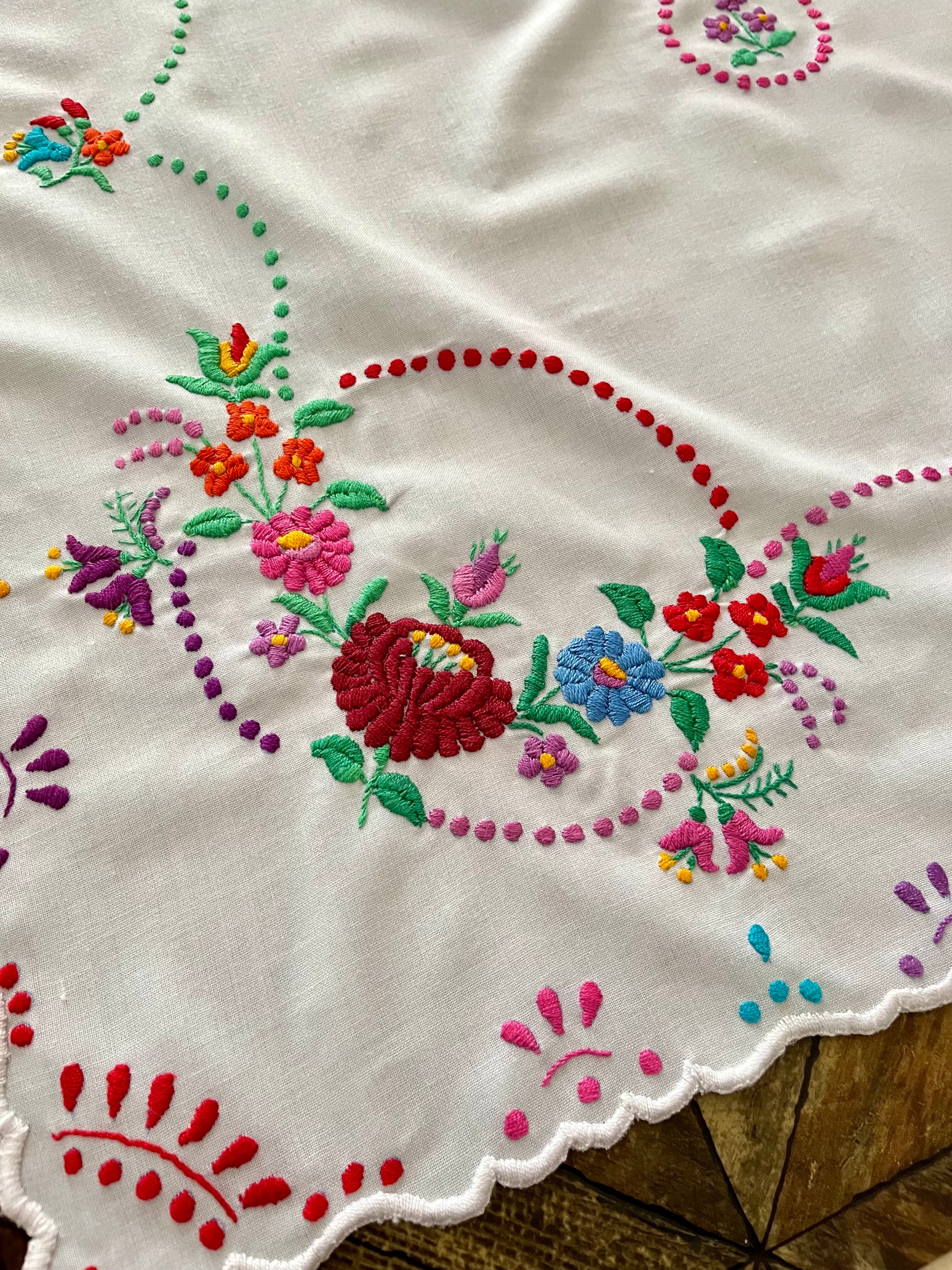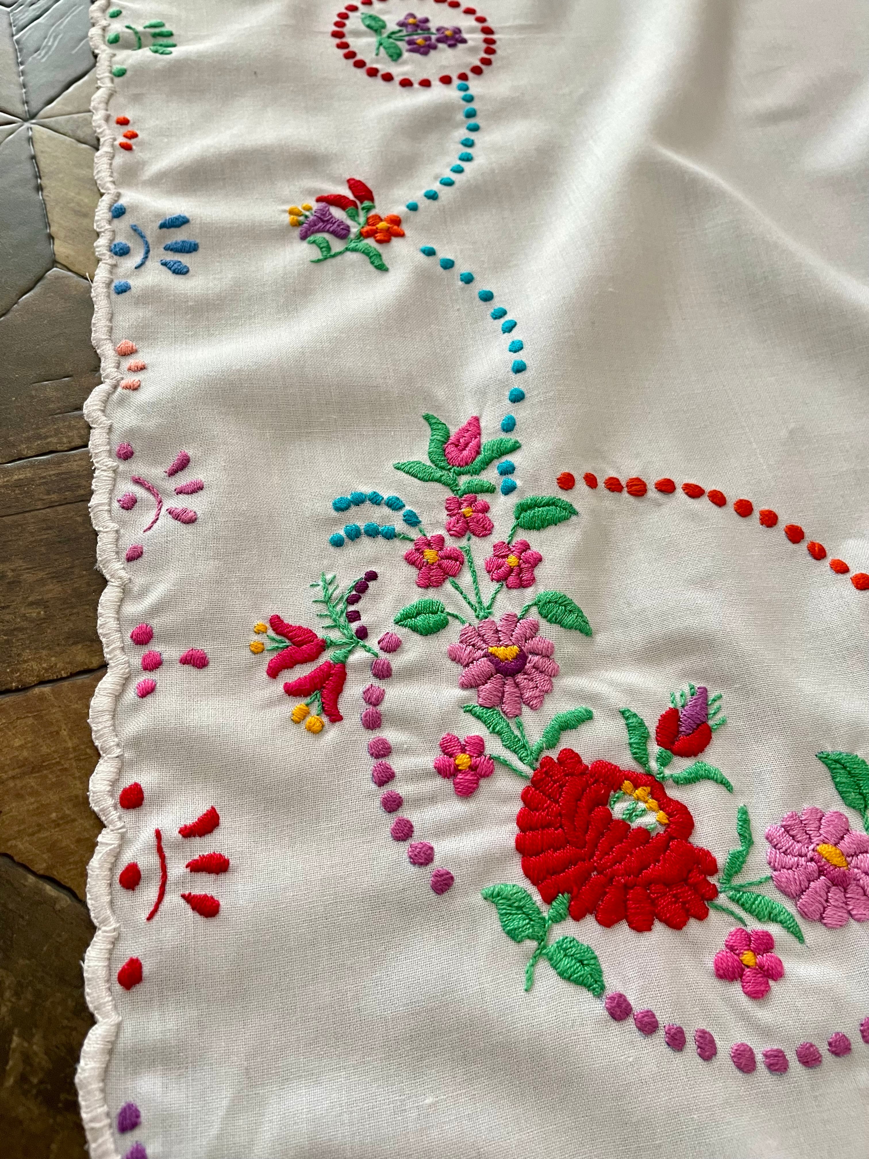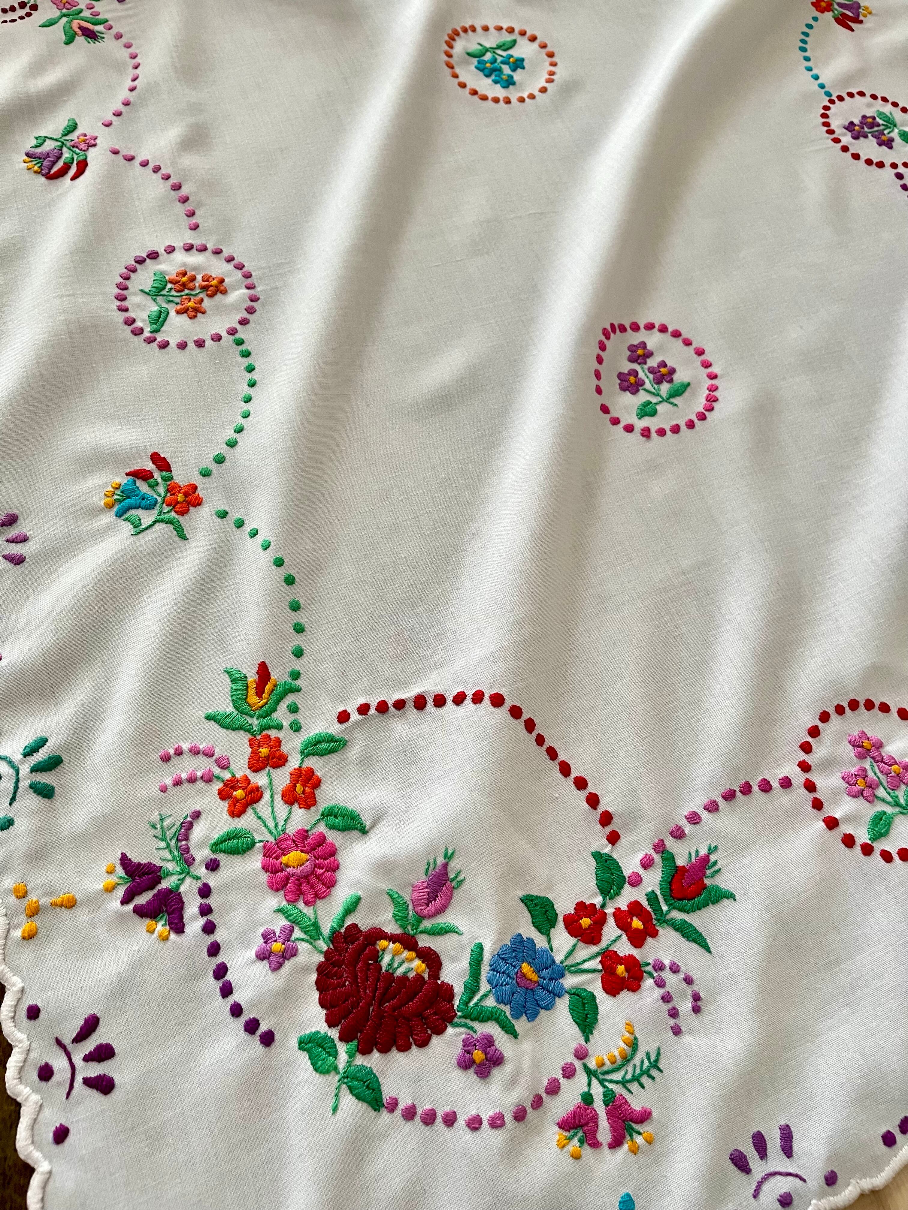 【大判】カラフルなハンガリー刺繍テーブルクロス ヴィンテージ 107×82cm
