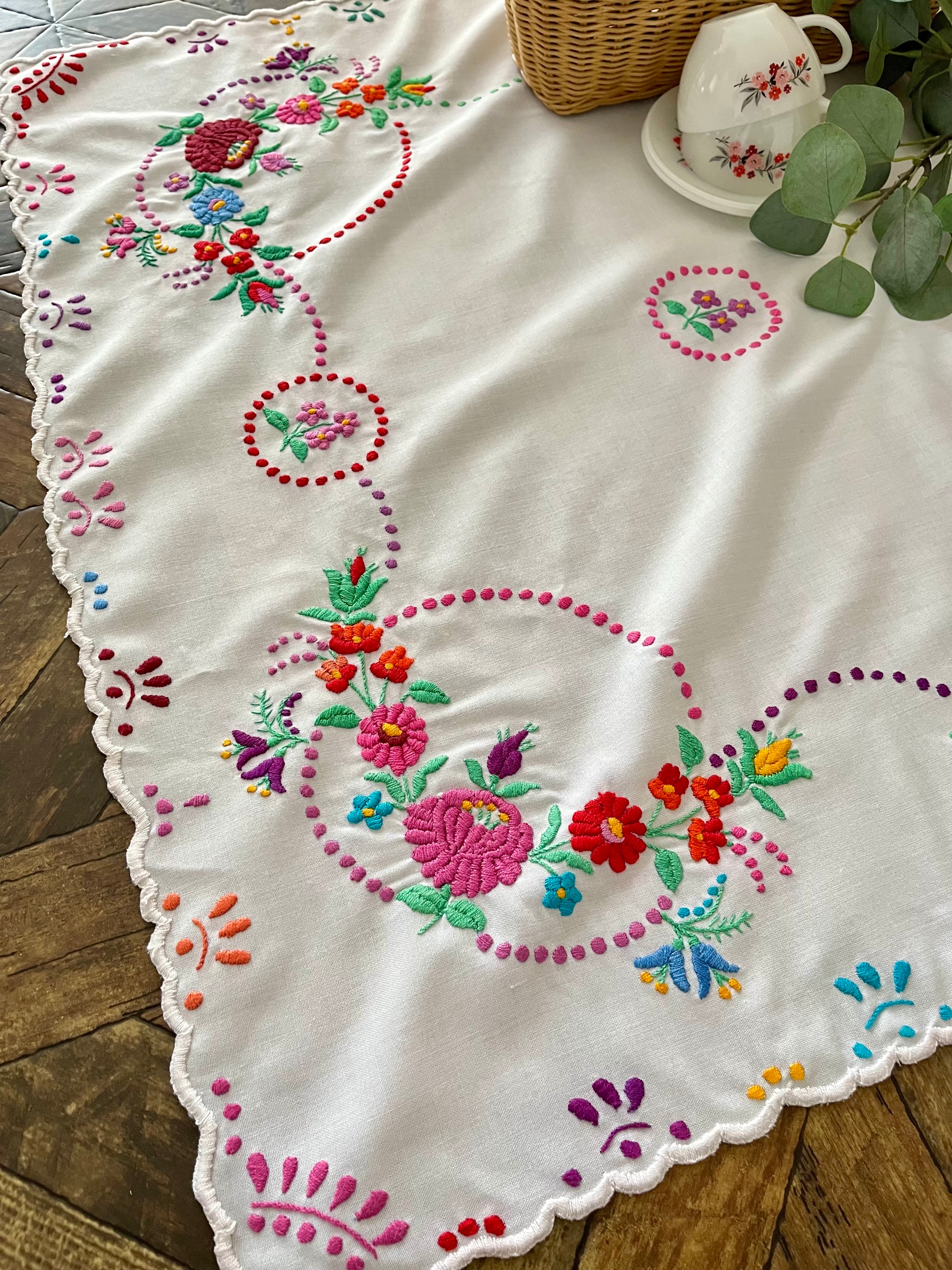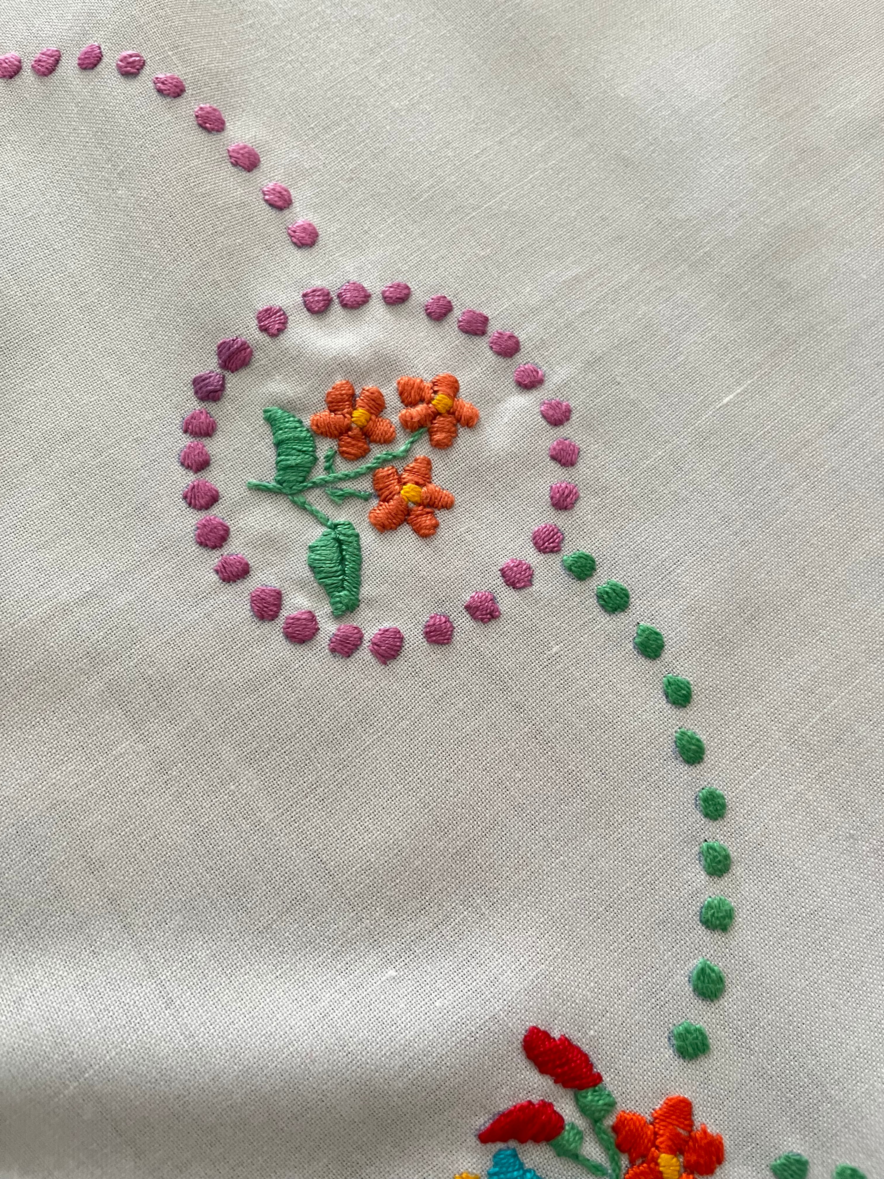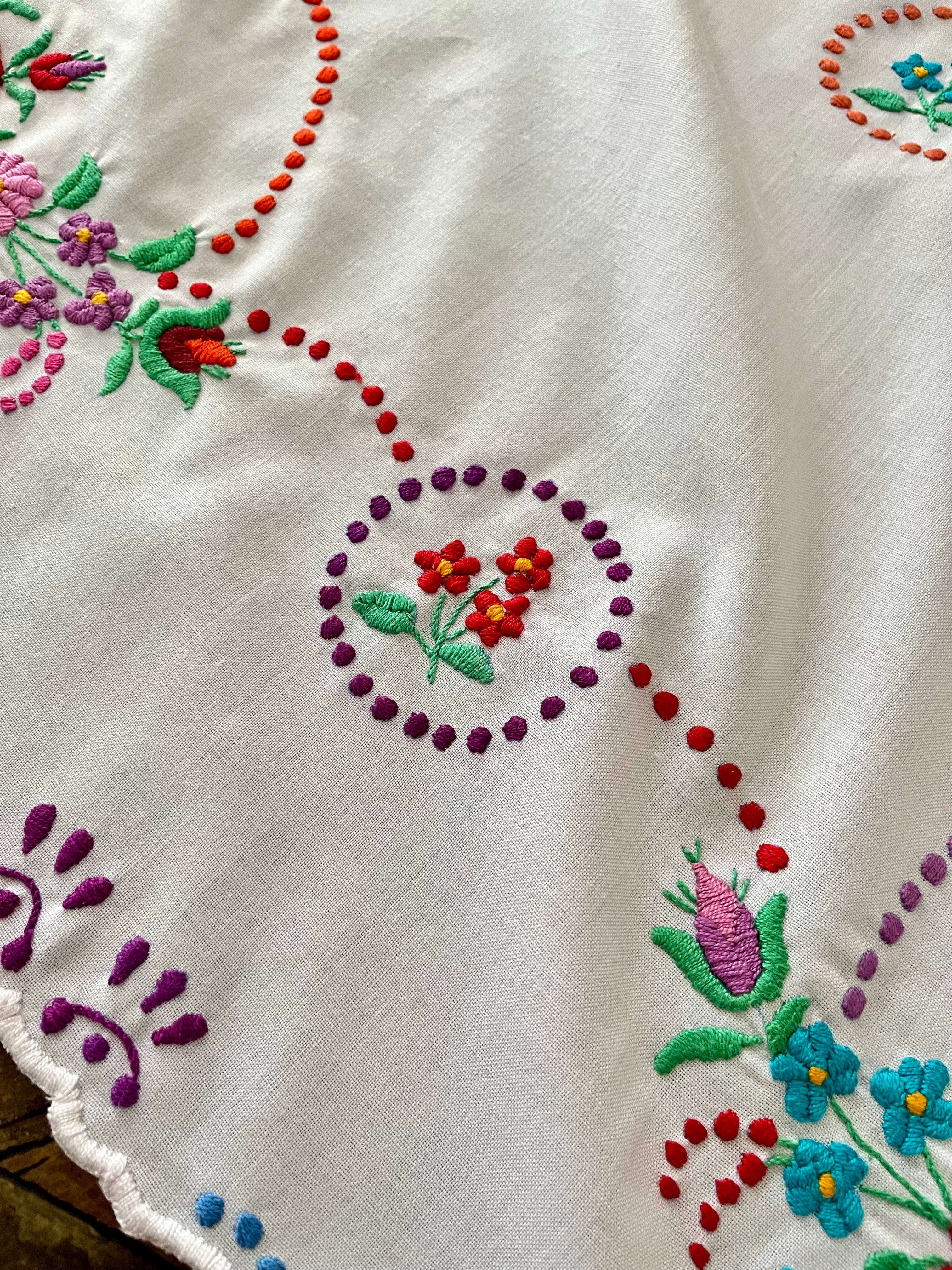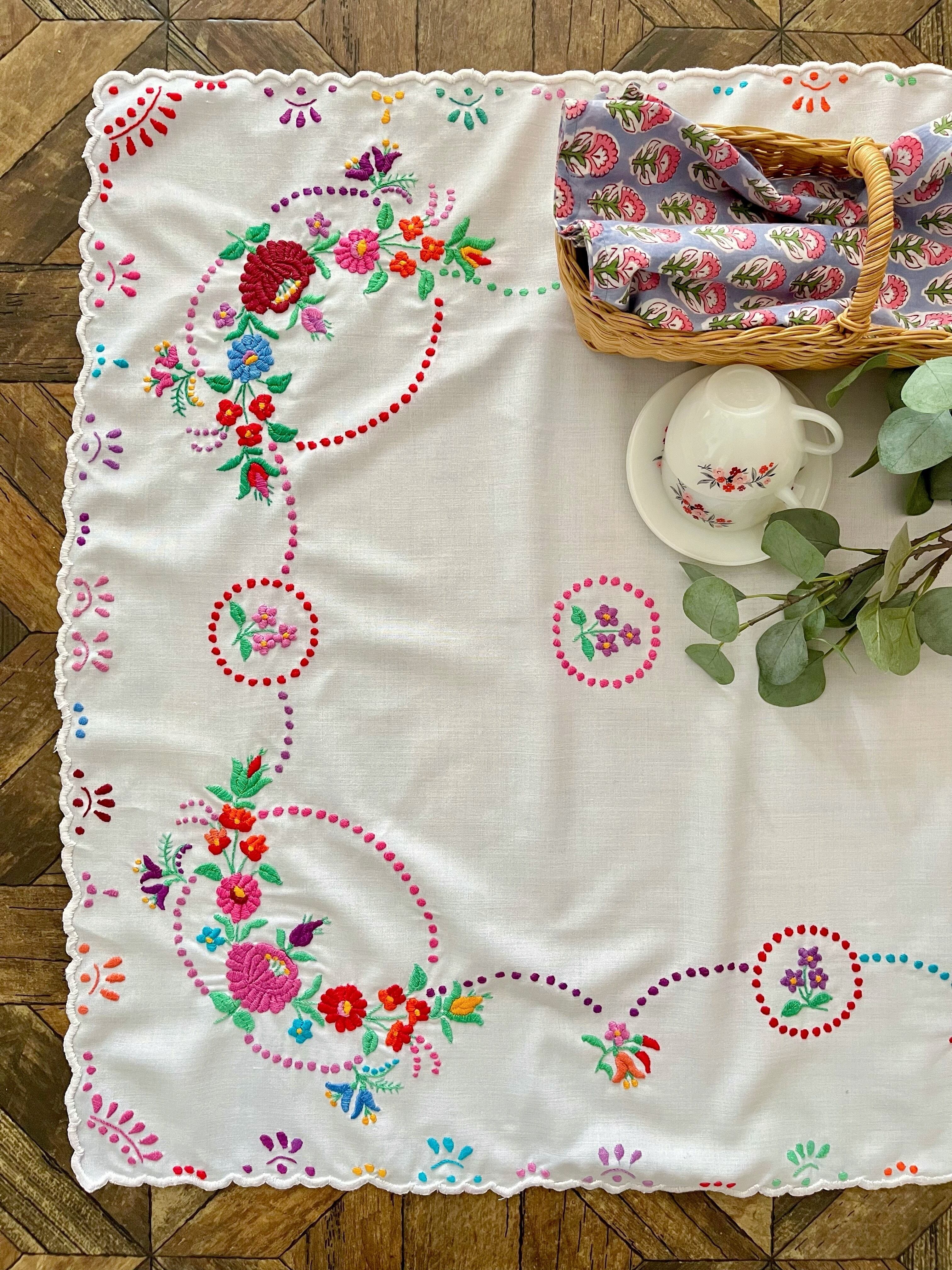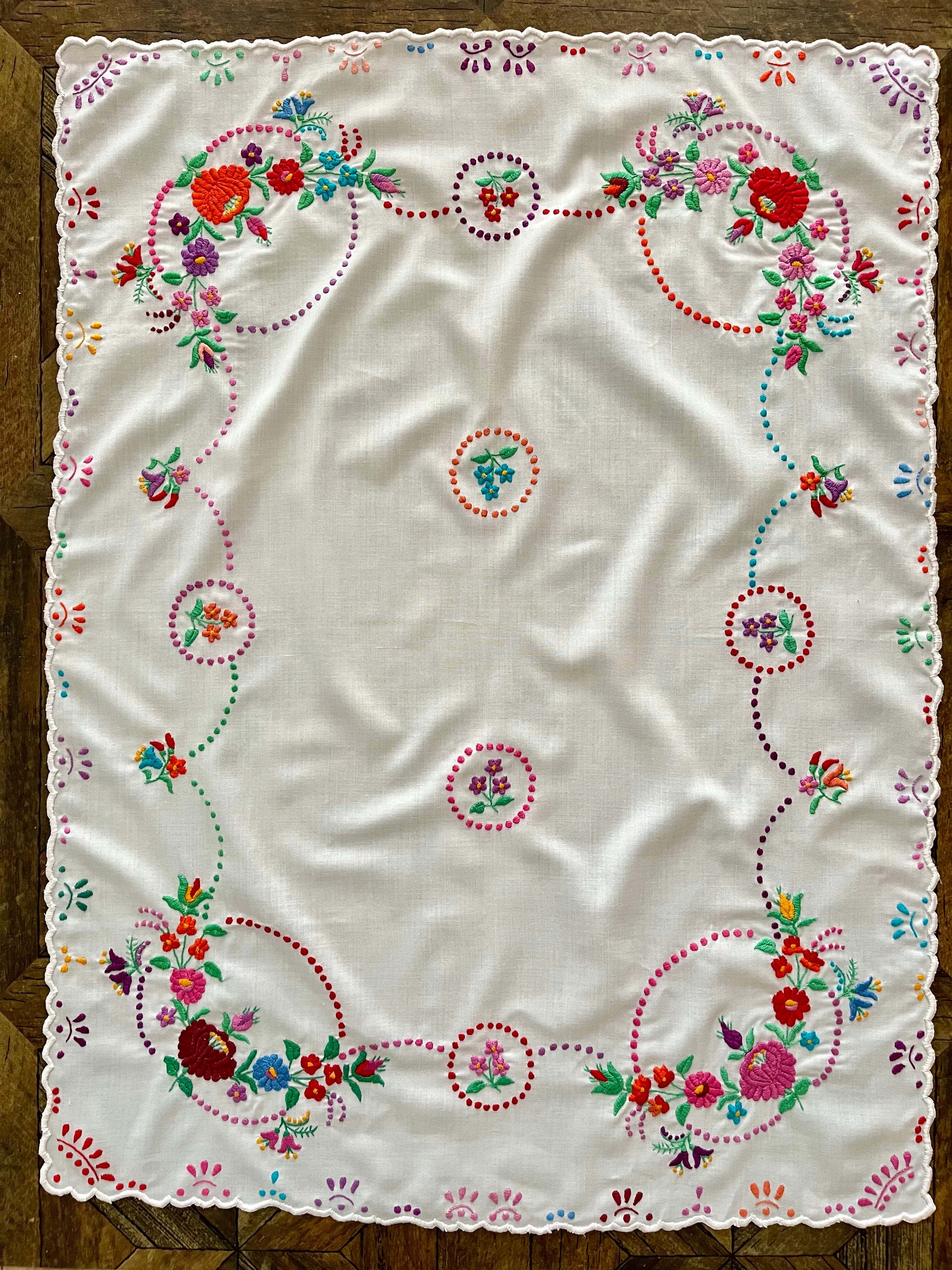 【大判】カラフルなハンガリー刺繍テーブルクロス ヴィンテージ 107×82cm