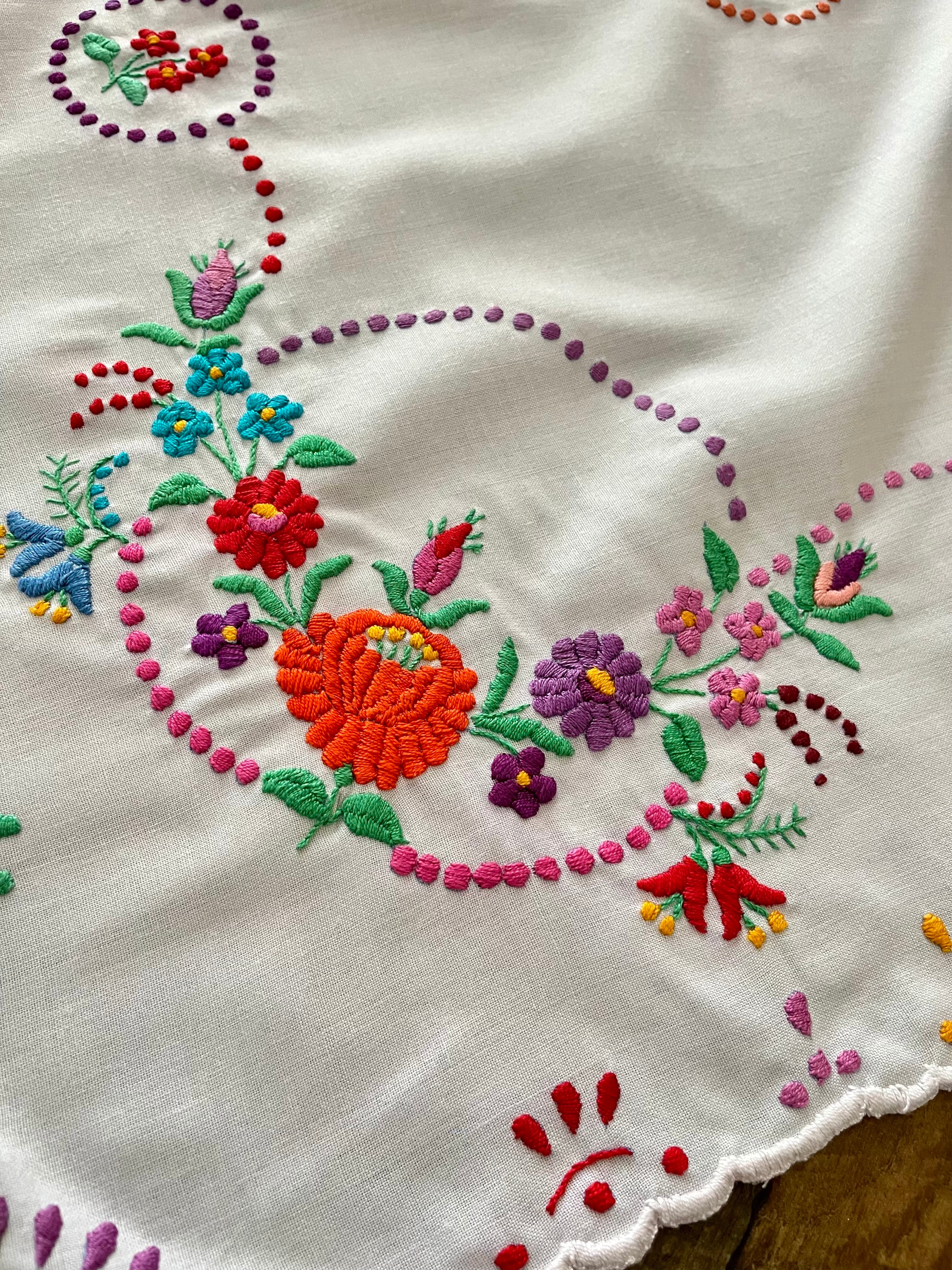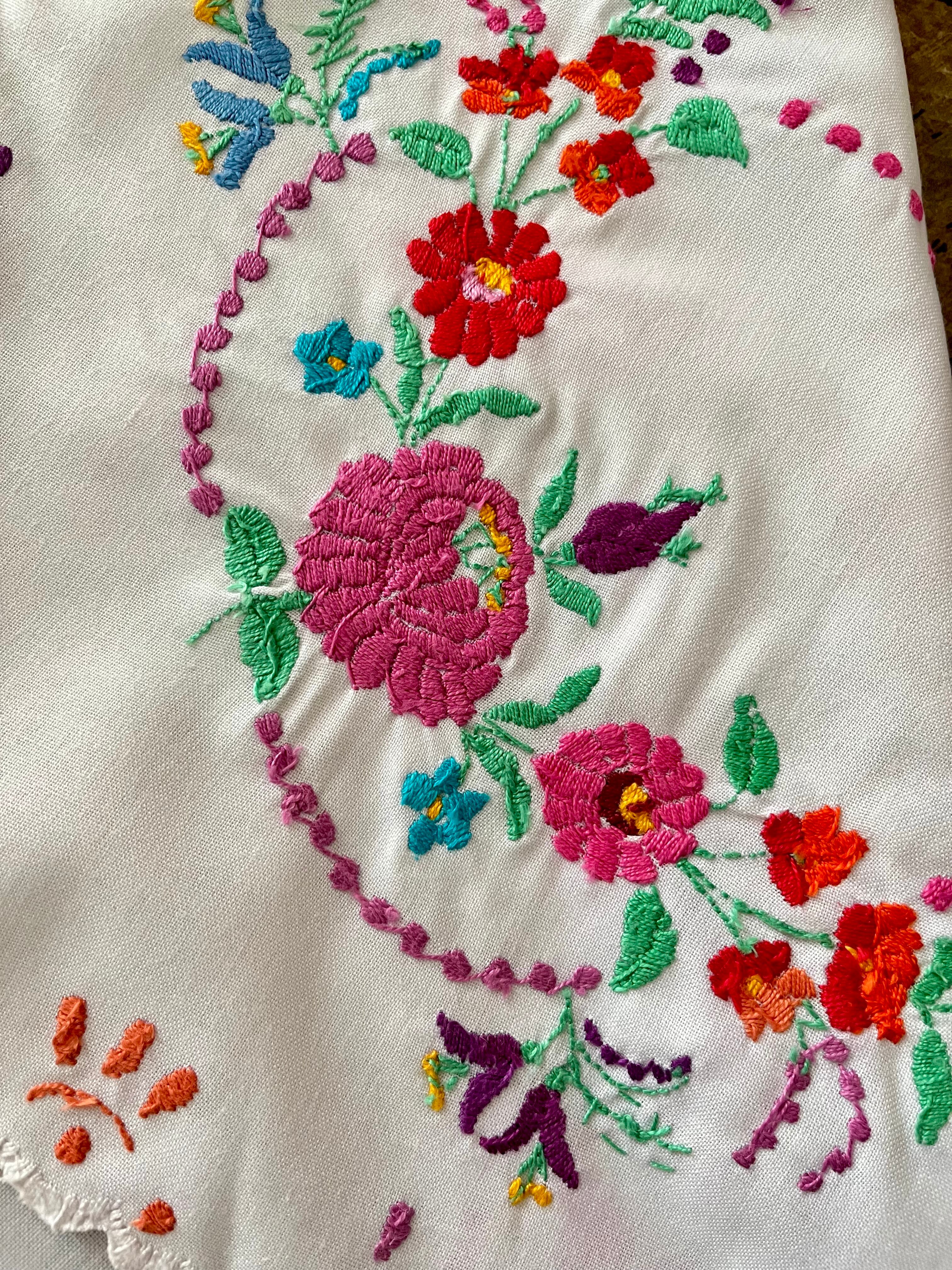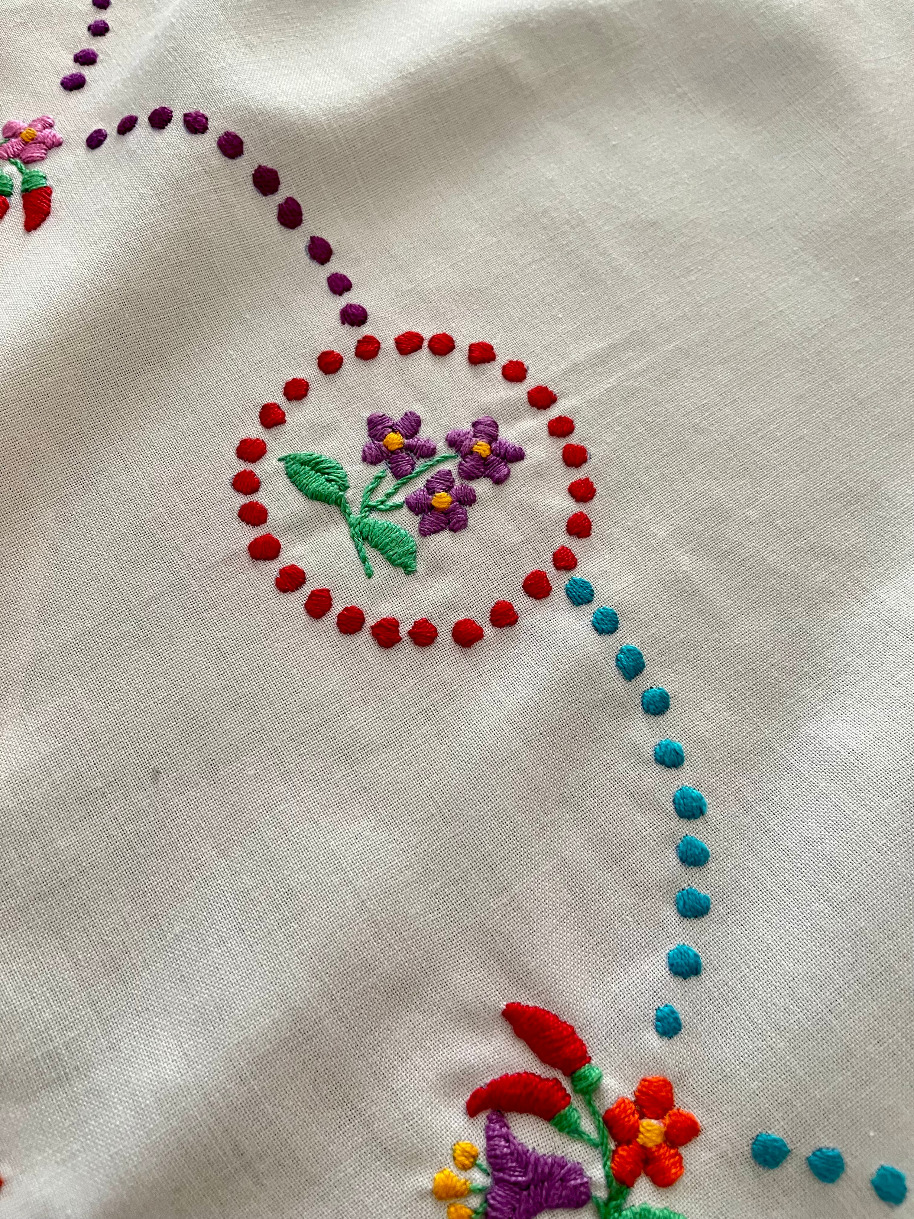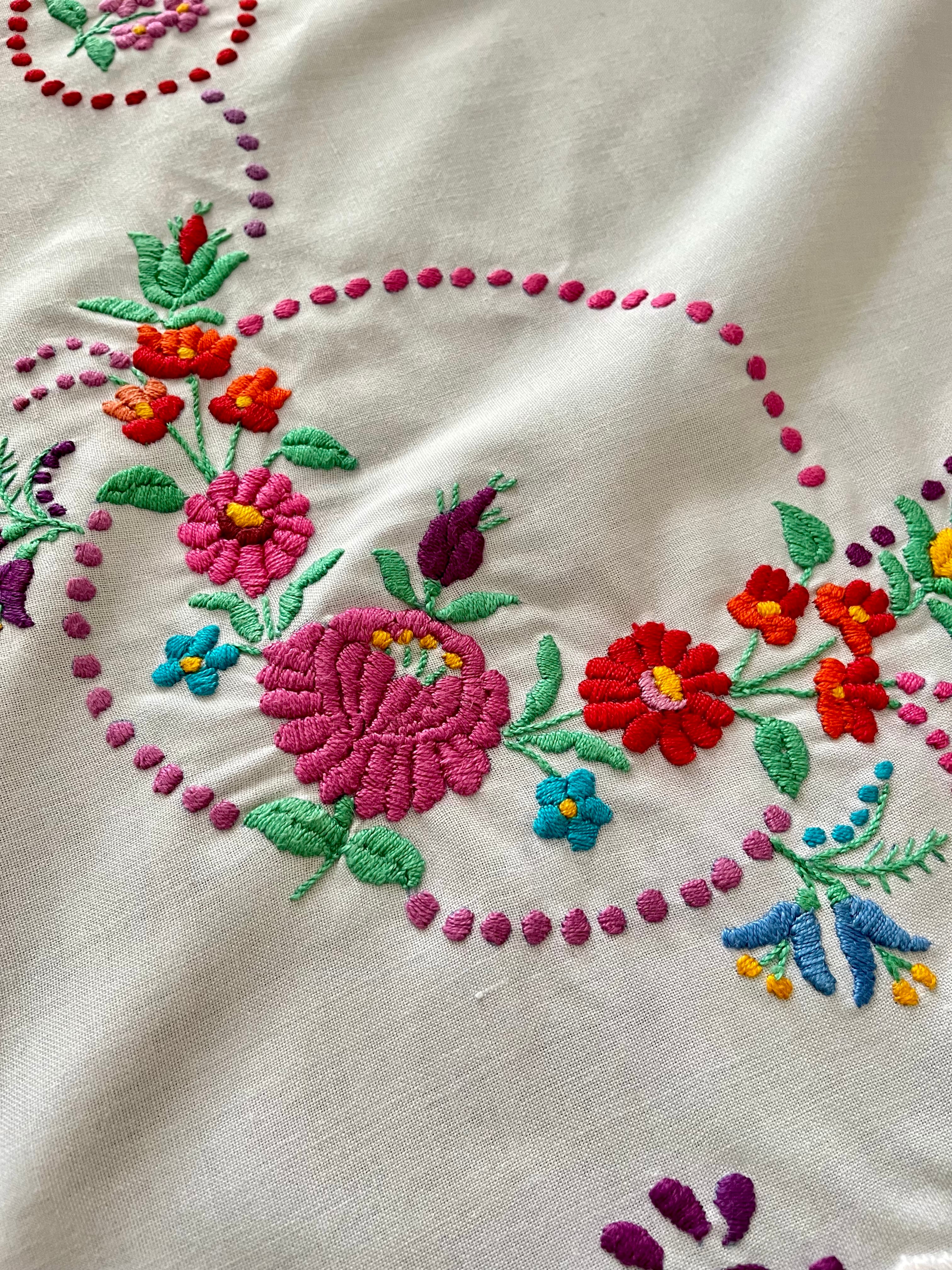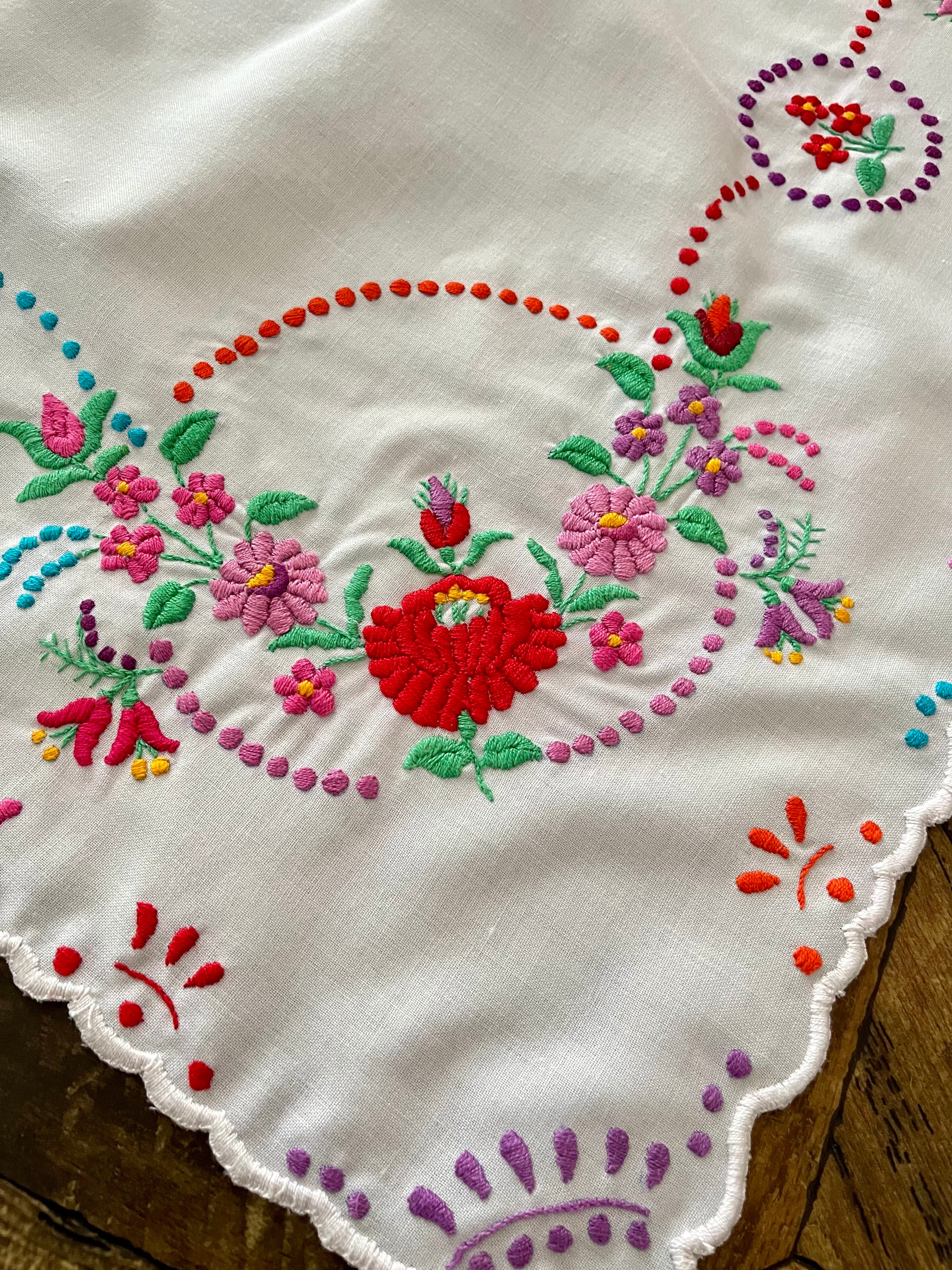 【大判】カラフルなハンガリー刺繍テーブルクロス ヴィンテージ 107×82cm