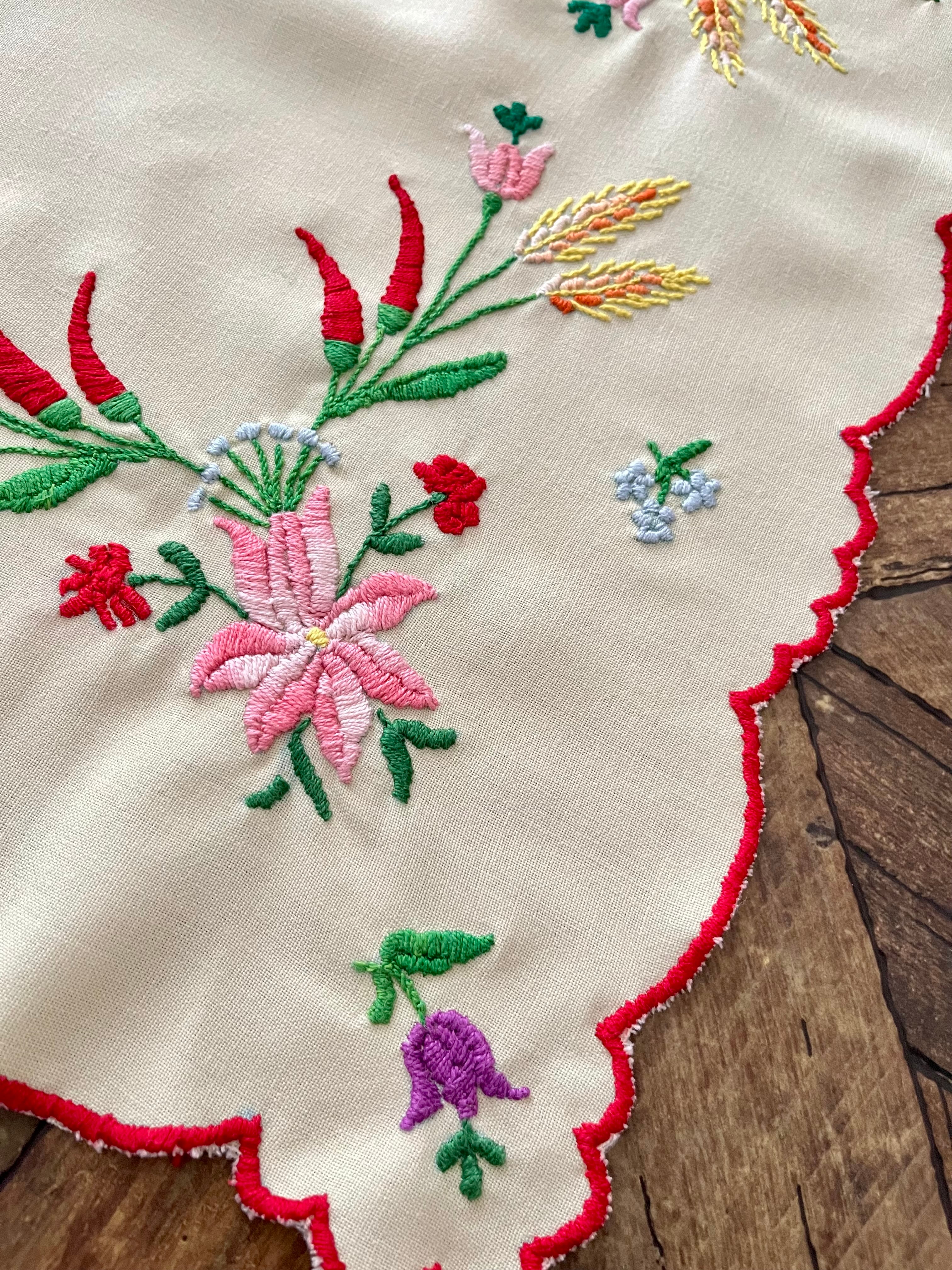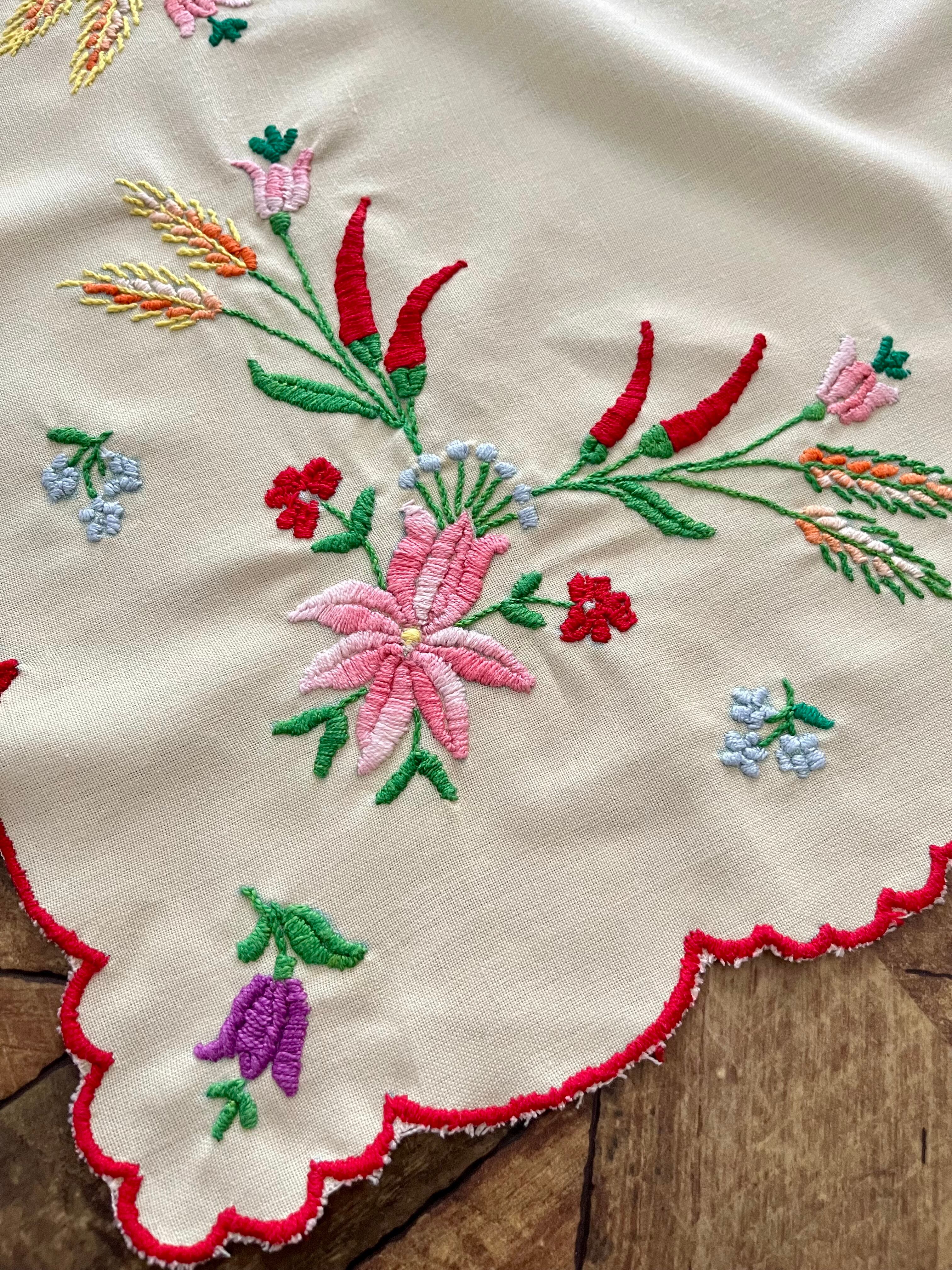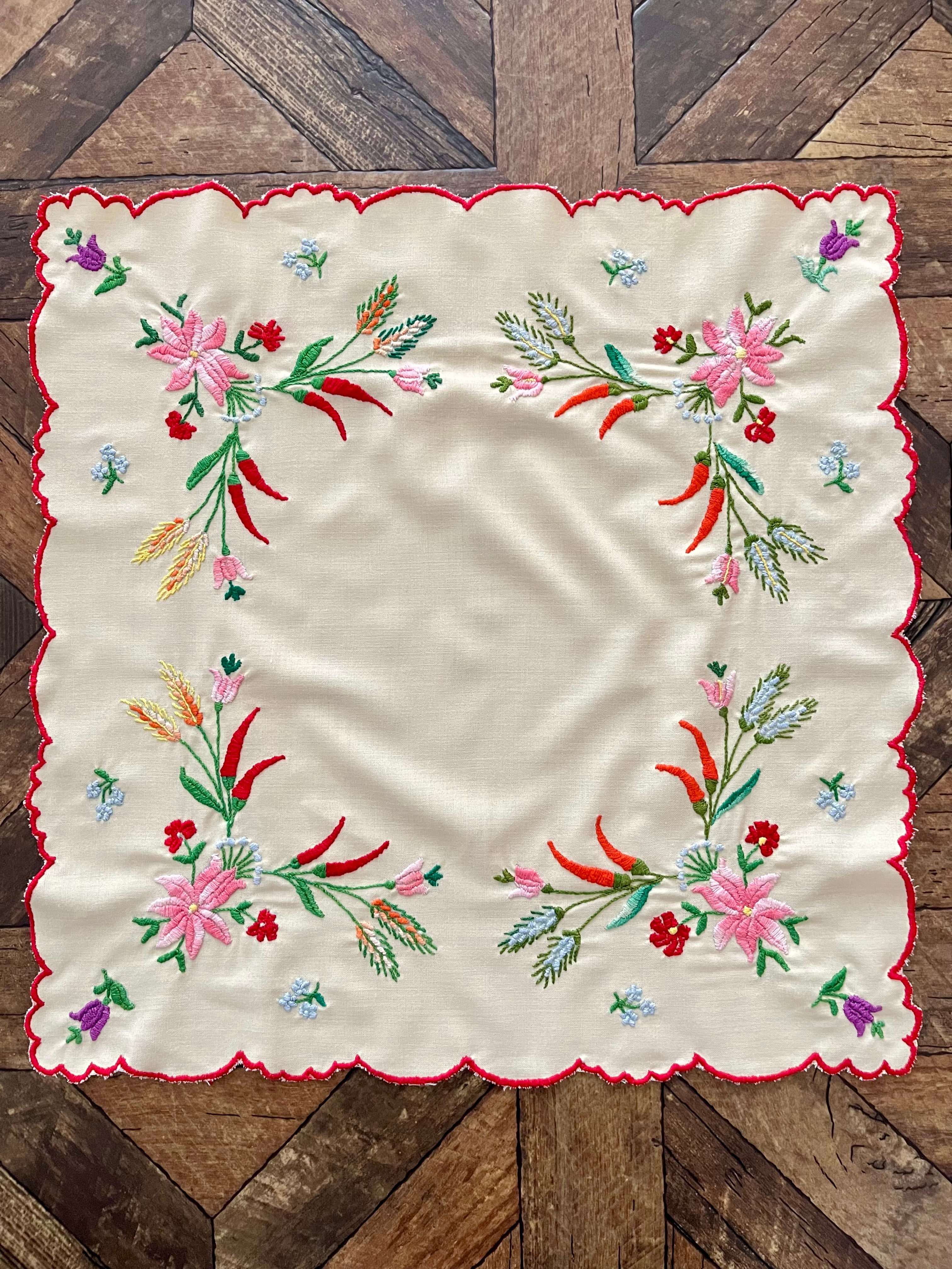 パプリカと麦のテーブルクロス ヴィンテージ ハンガリー刺繍 約54×54cm