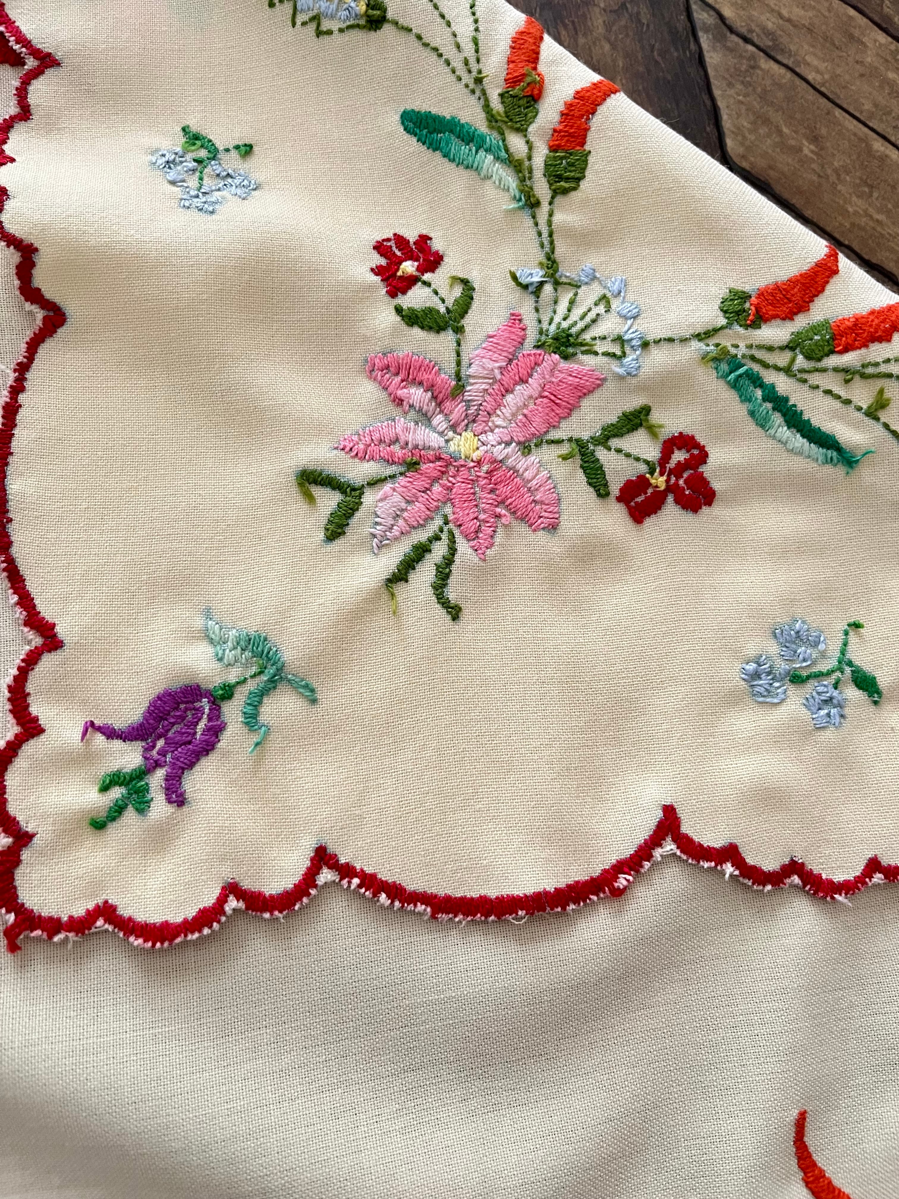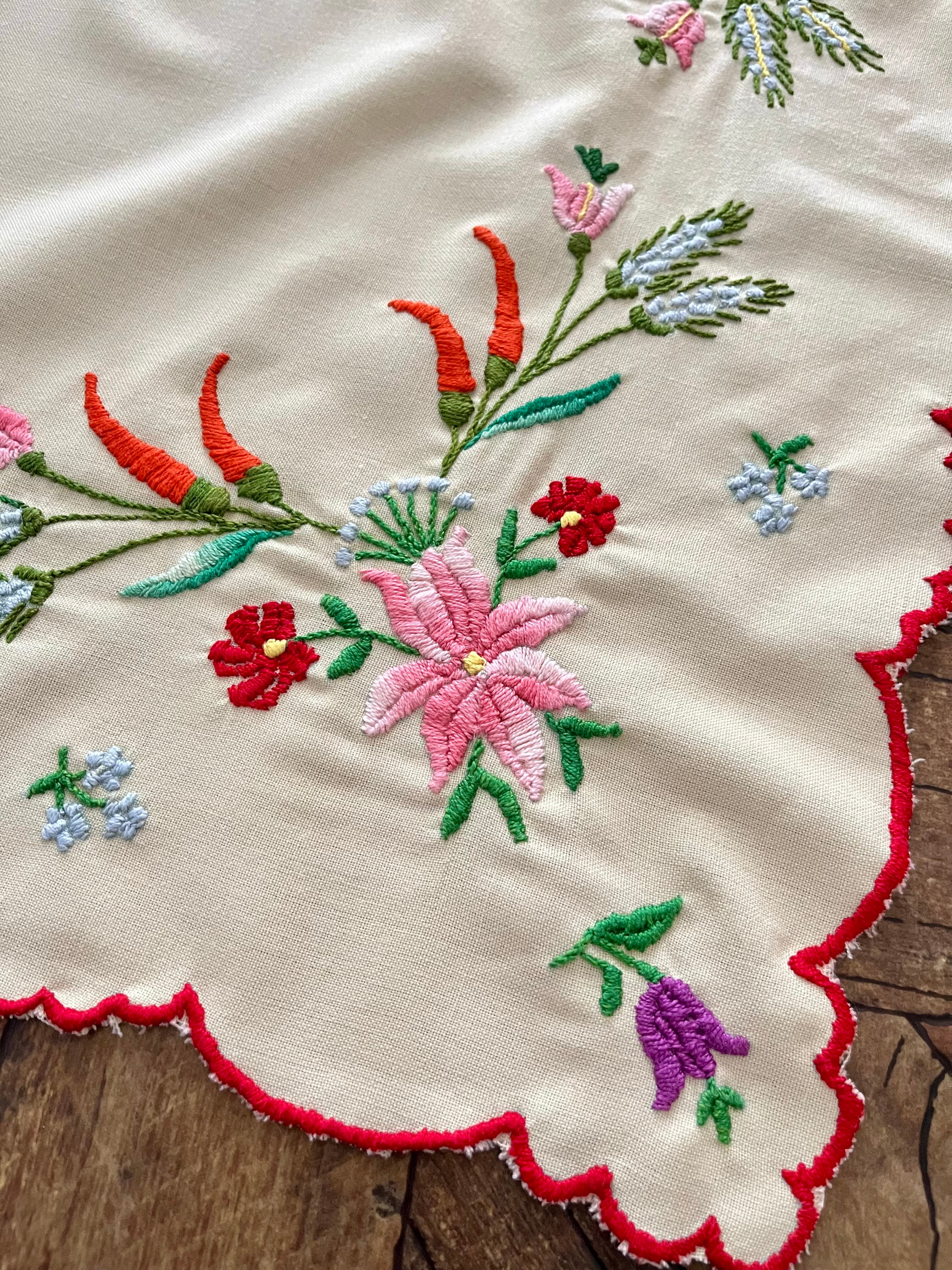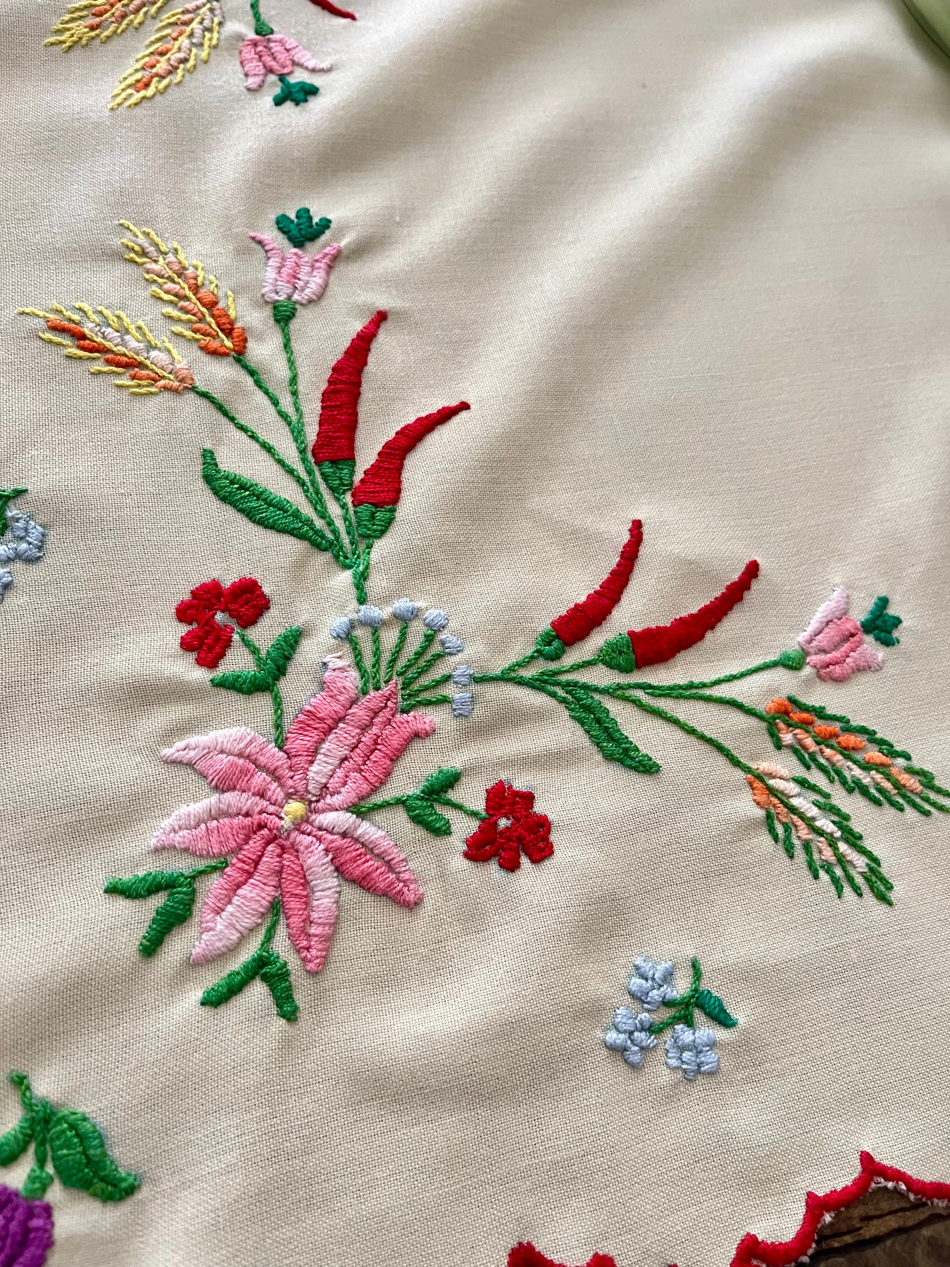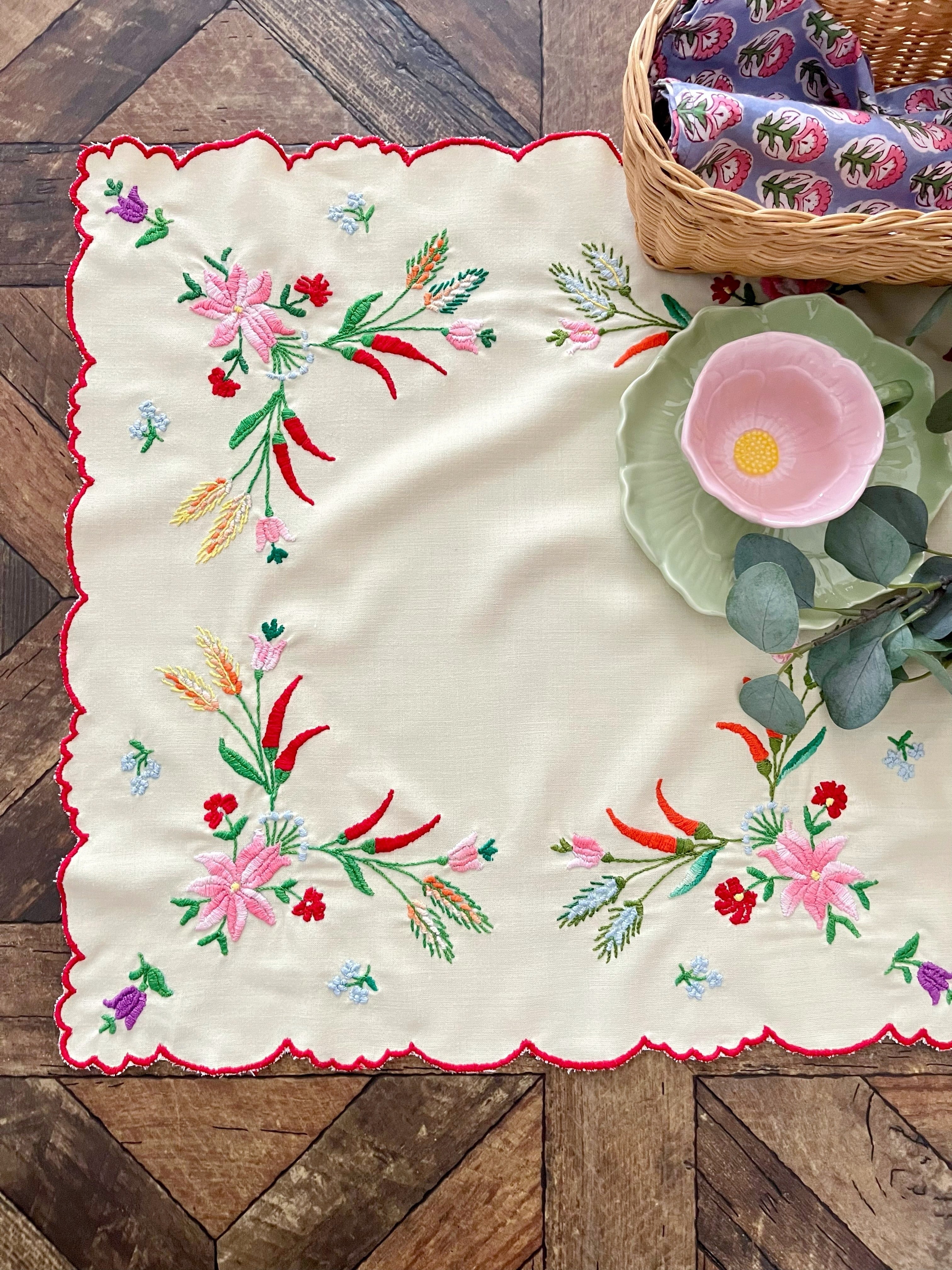 パプリカと麦のテーブルクロス ヴィンテージ ハンガリー刺繍 約54×54cm
