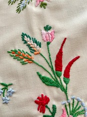 お花の刺繍のイメージが強いカロチャ刺繍ですが、実はカロチャ地方の名産品であるパプリカと麦の穂も、カロチャ刺繍の代表的なモチーフなのです。