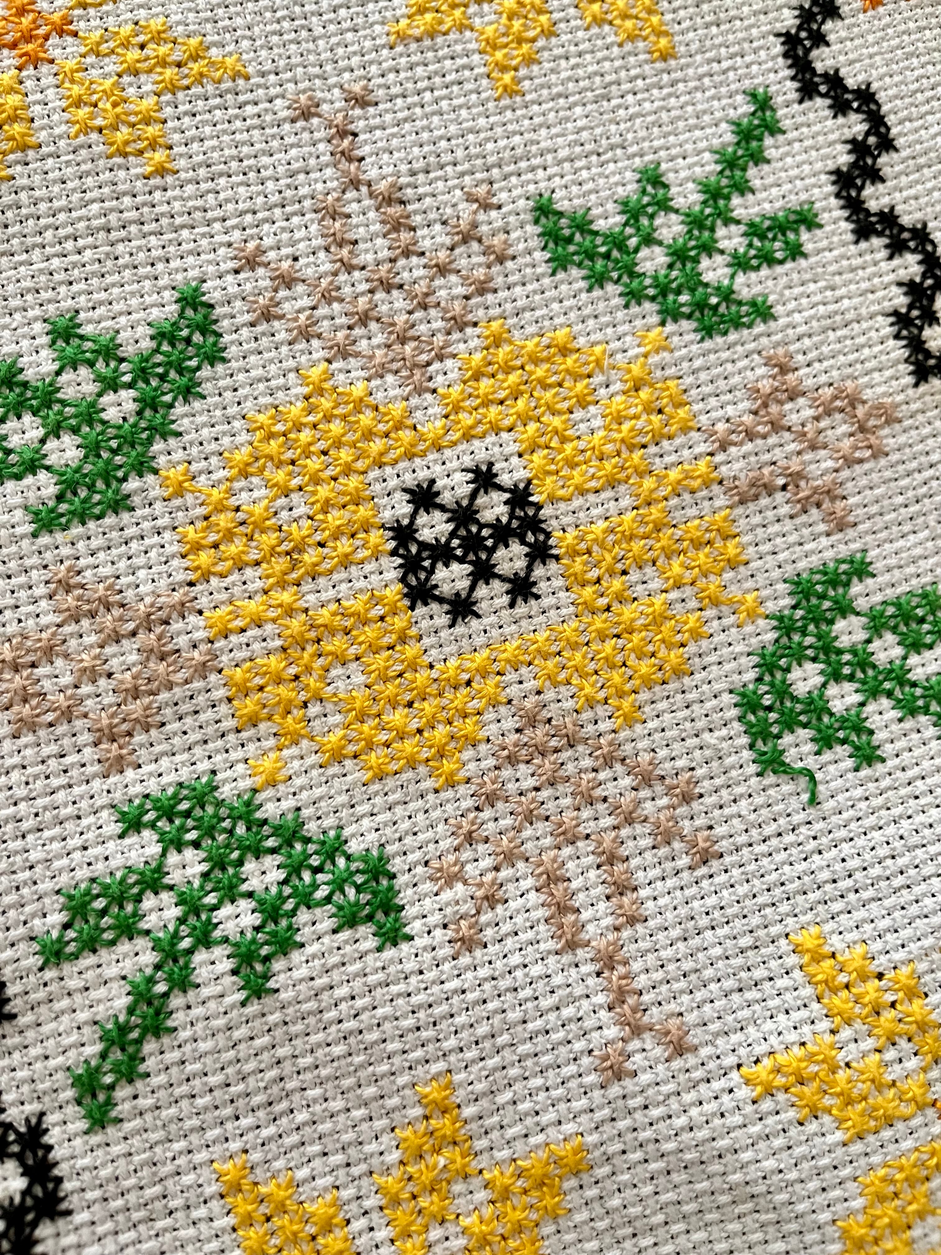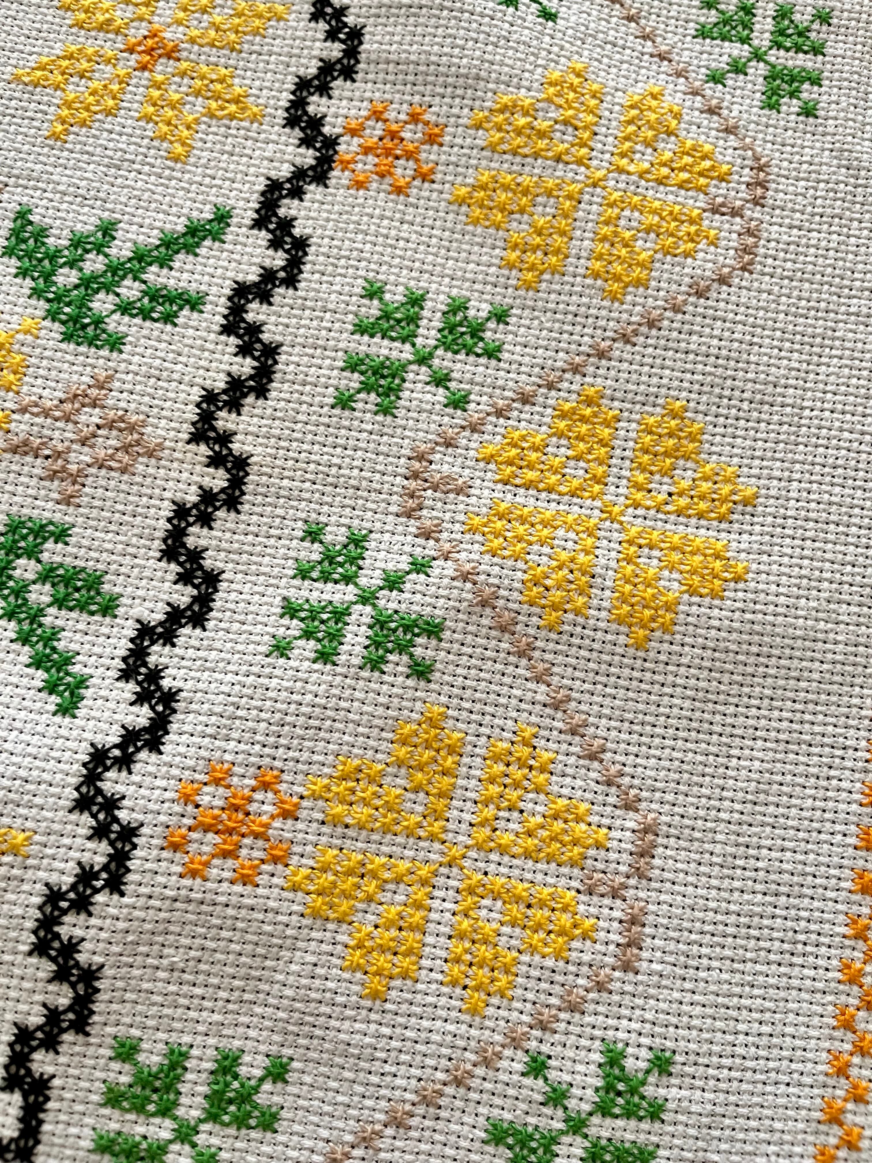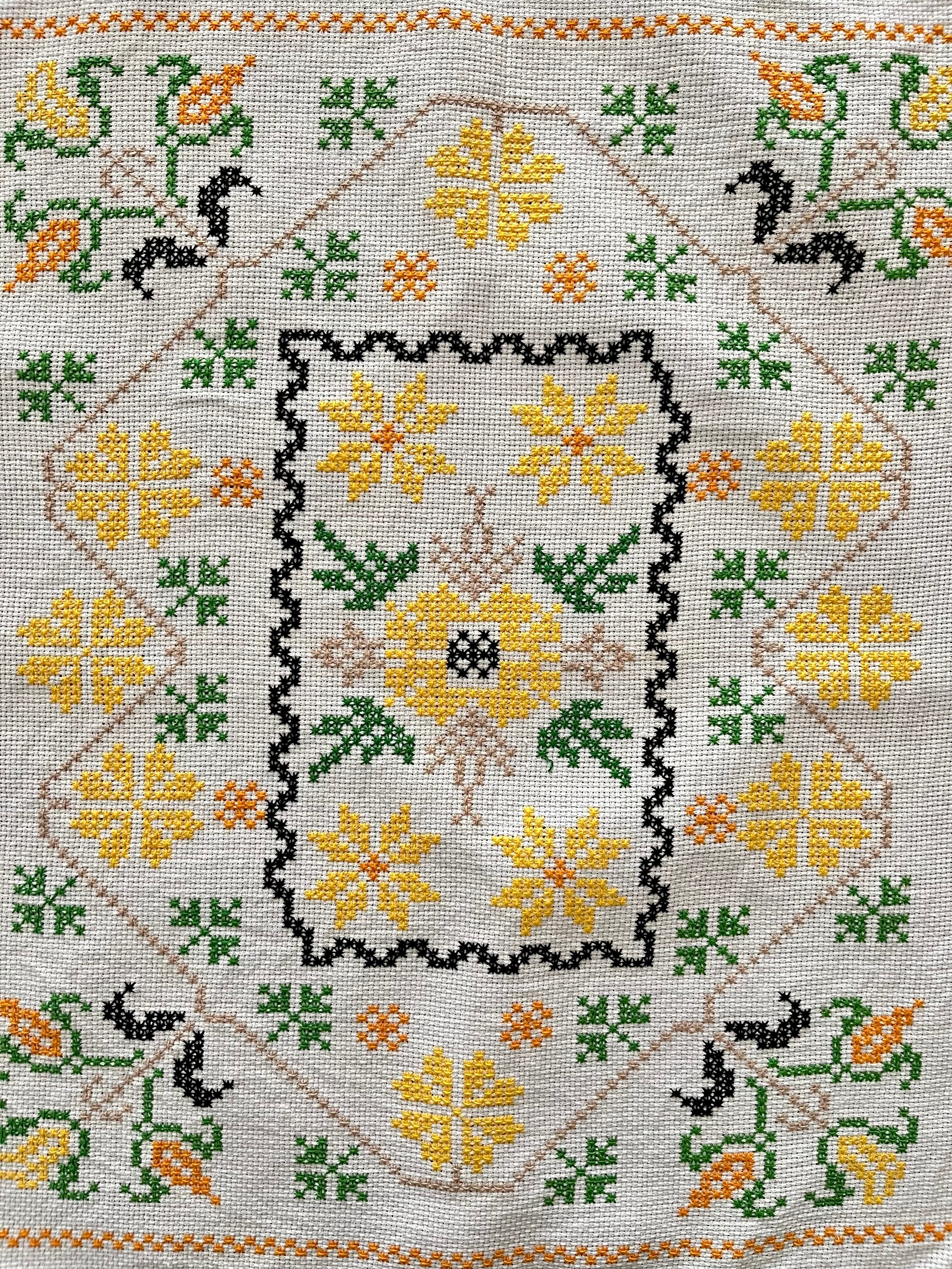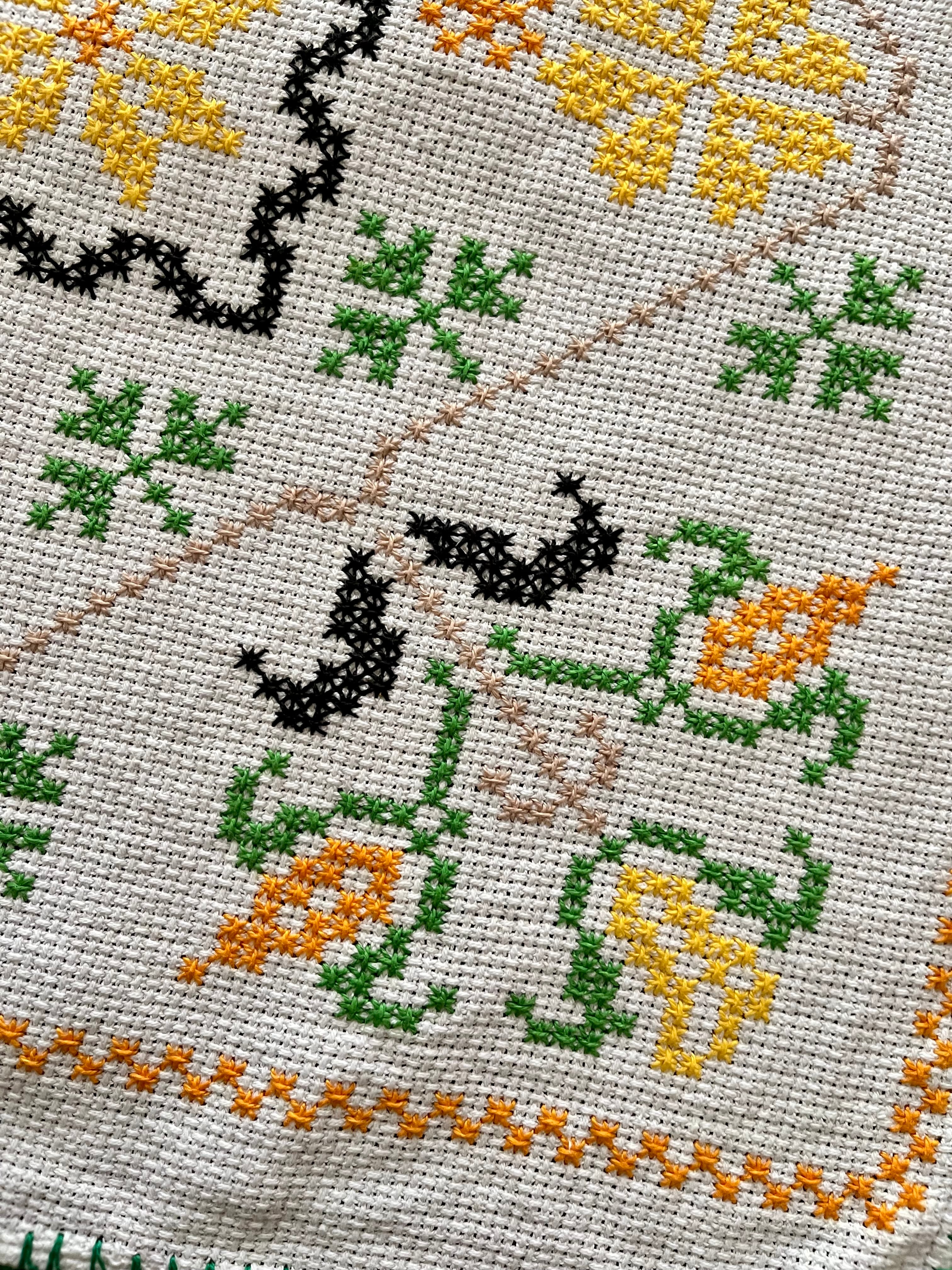 【緑縁】イエロー×グリーンのナチュラル刺繍のクロス ヴィンテージハンガリー刺繍 61×49 cm