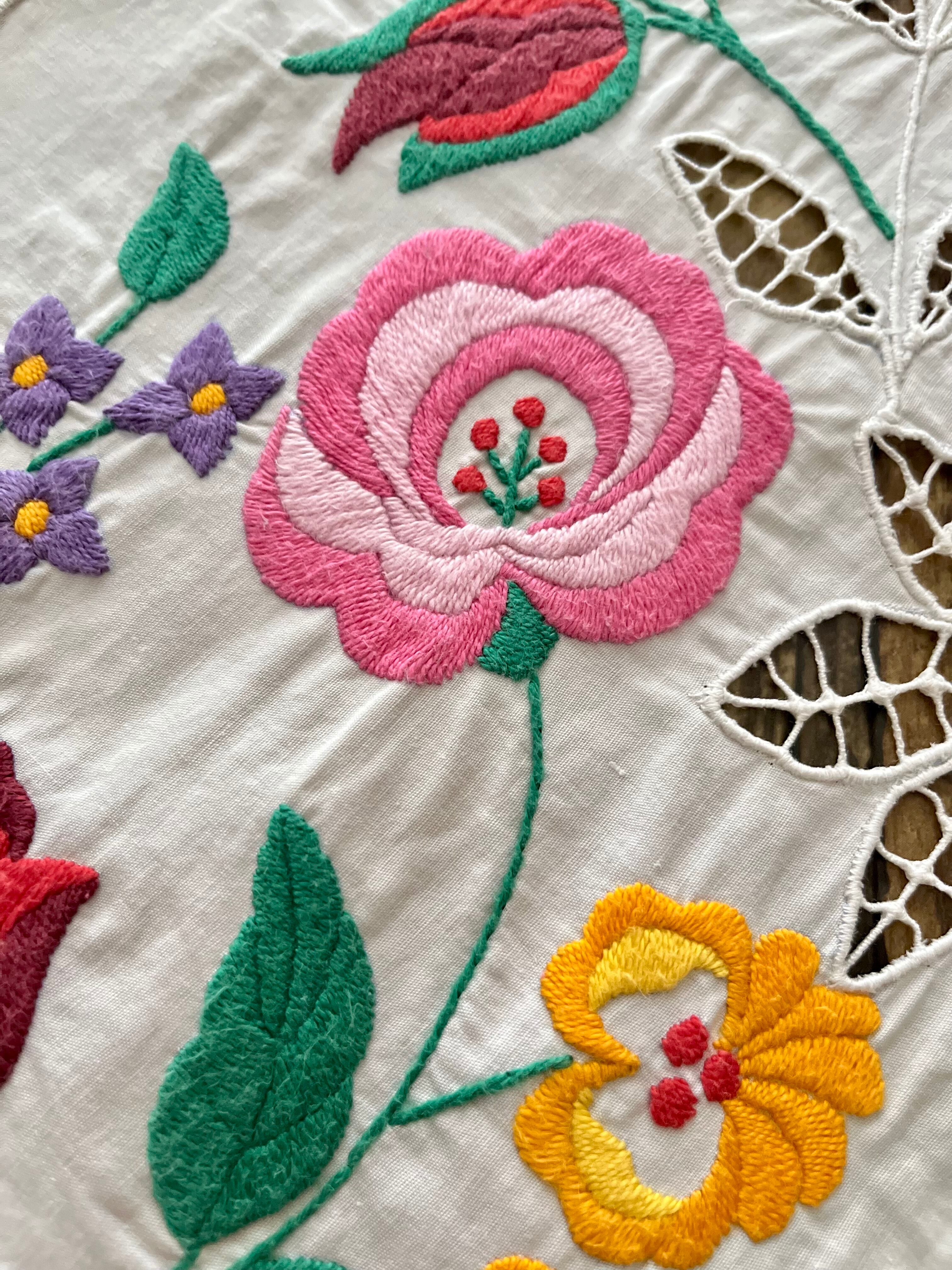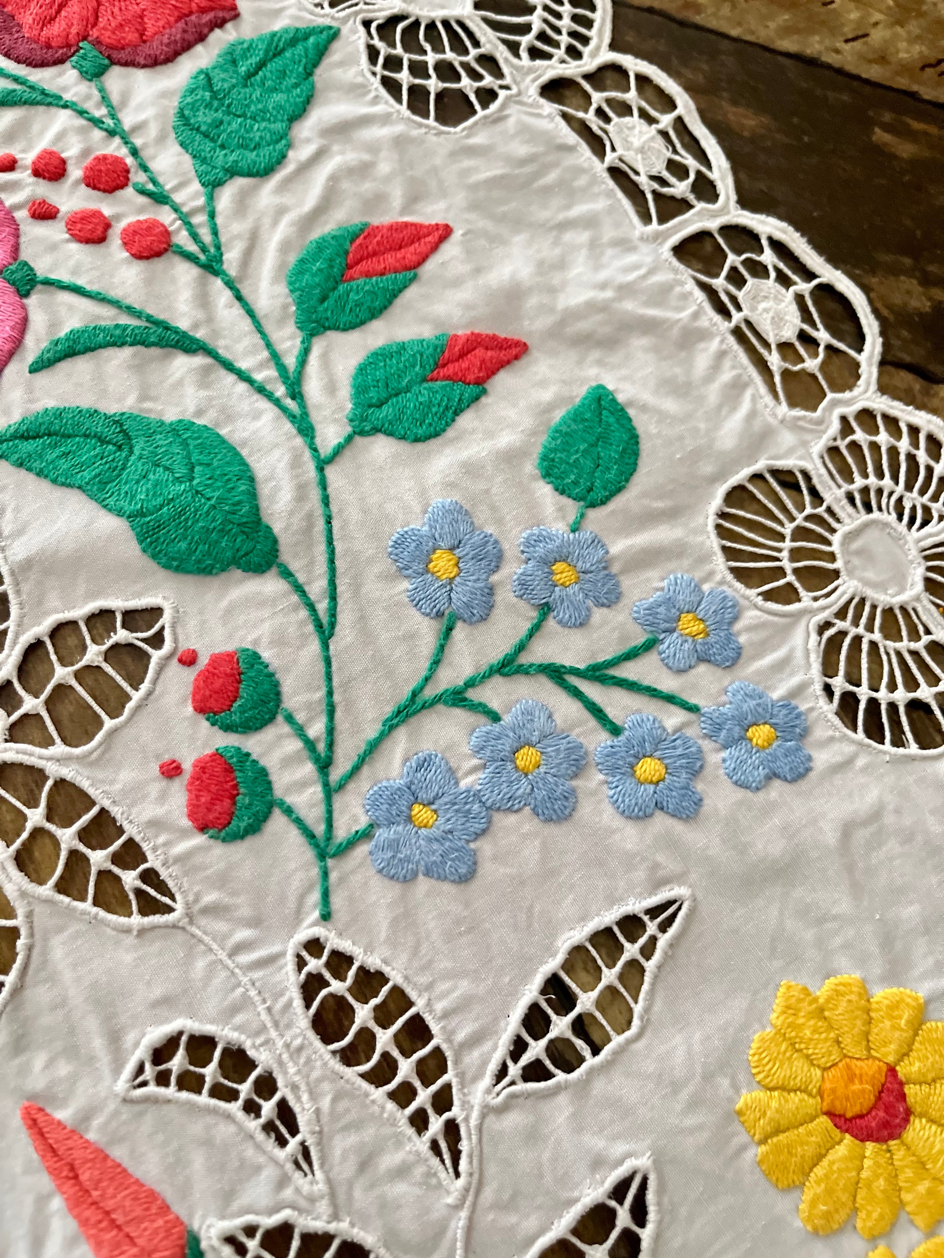 レース調のカロチャ刺繍、カロチャリシェリューのテーブルランナー。