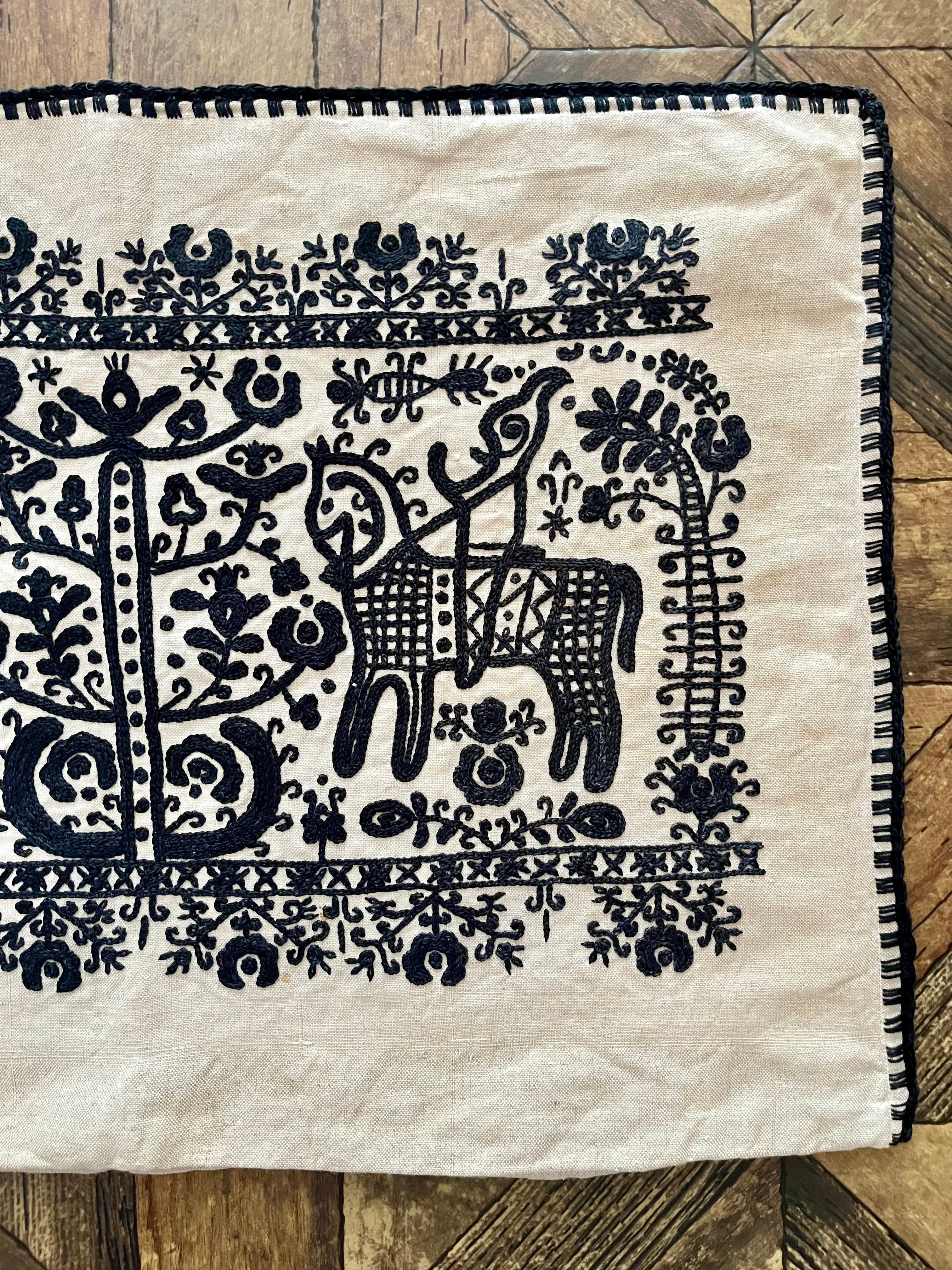 馬と生命の樹のピローカバー 65×45cm ヴィンテージ トランシルヴァニア