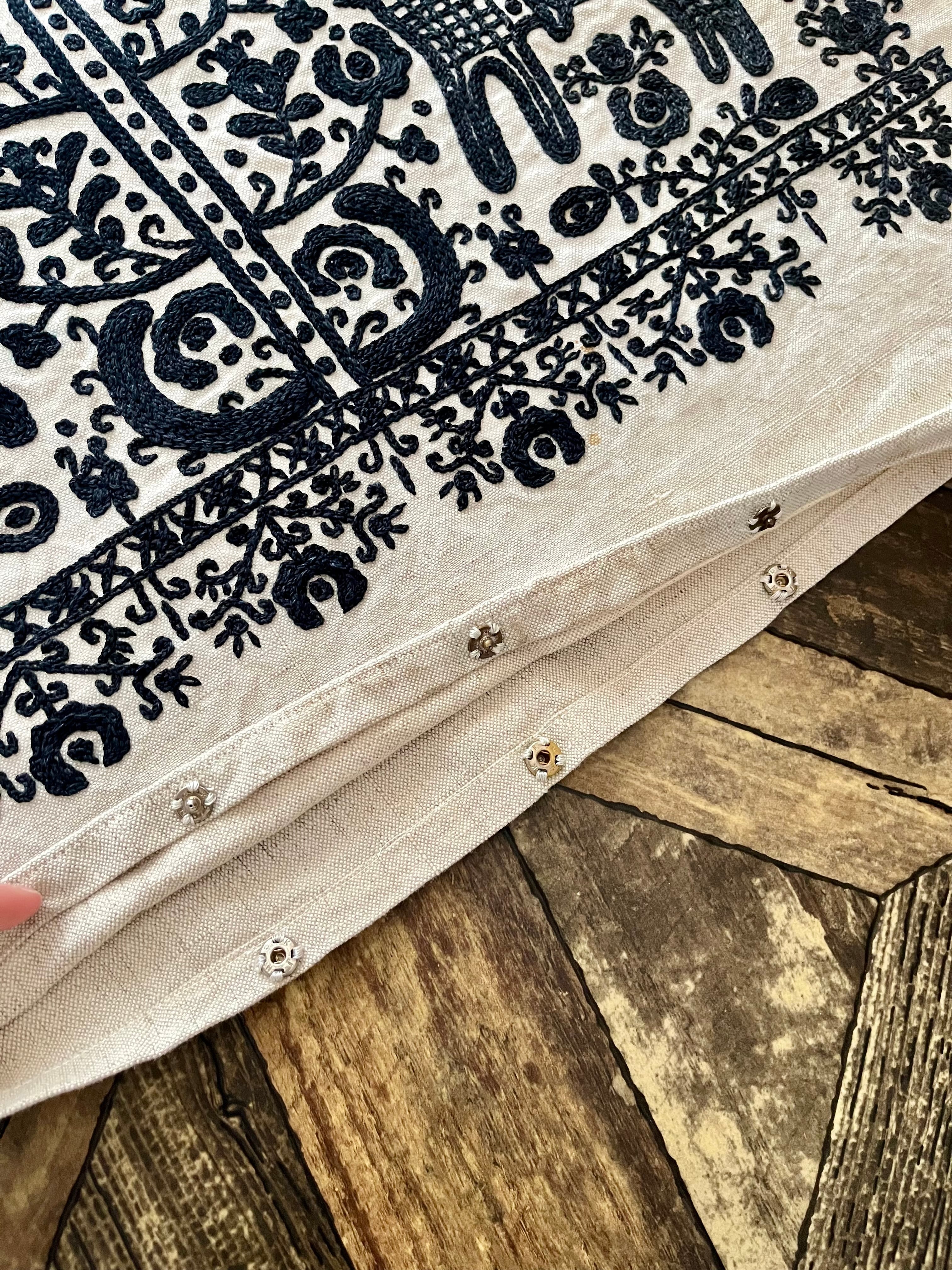 しっかりとしたリネン素材で、クッションカバーとしてはもちろんのこと、タペストリーのように壁に飾ってもとても素敵です。