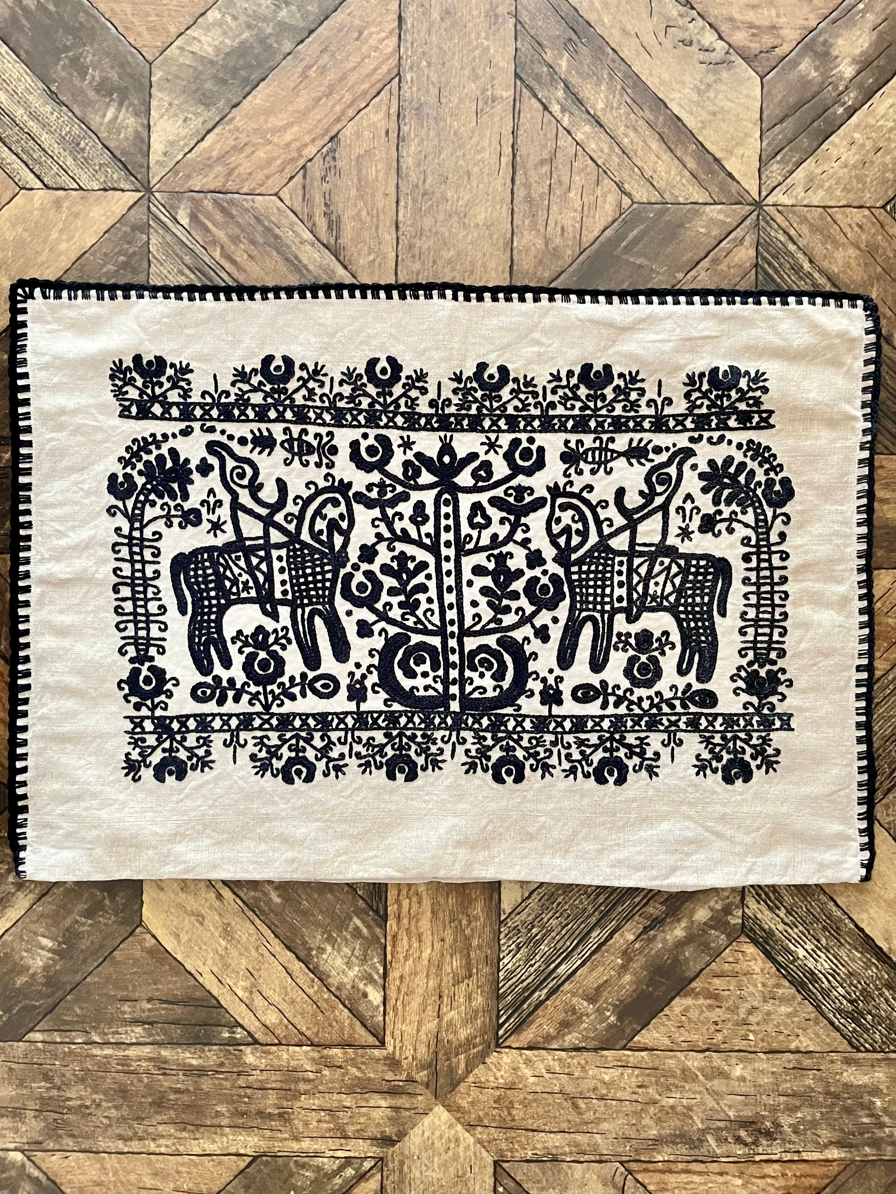 かつてハンガリーだった地域である、ルーマニアのトランシルヴァニア地方のものと思われる刺繍が施されたピローカバー。
