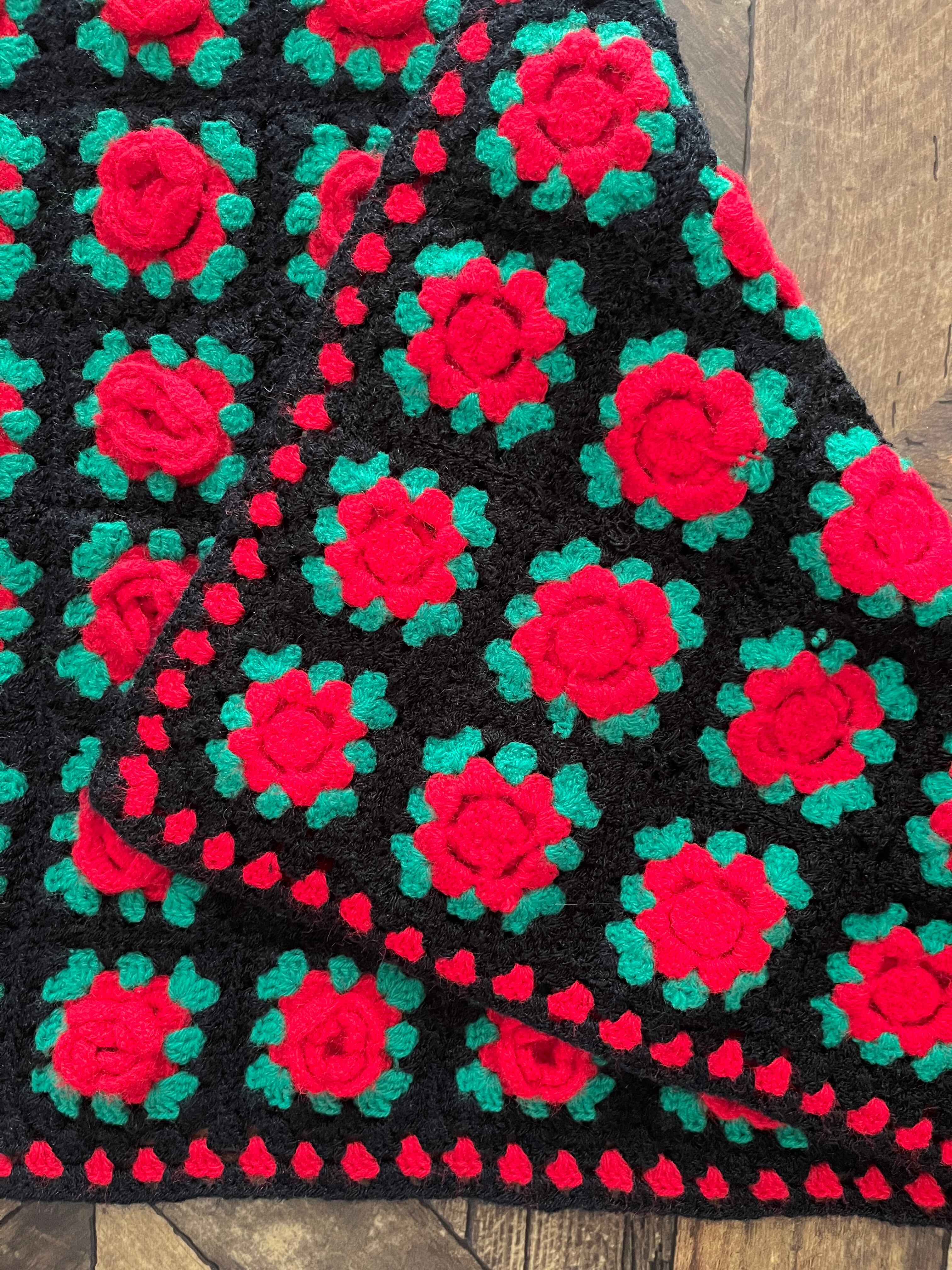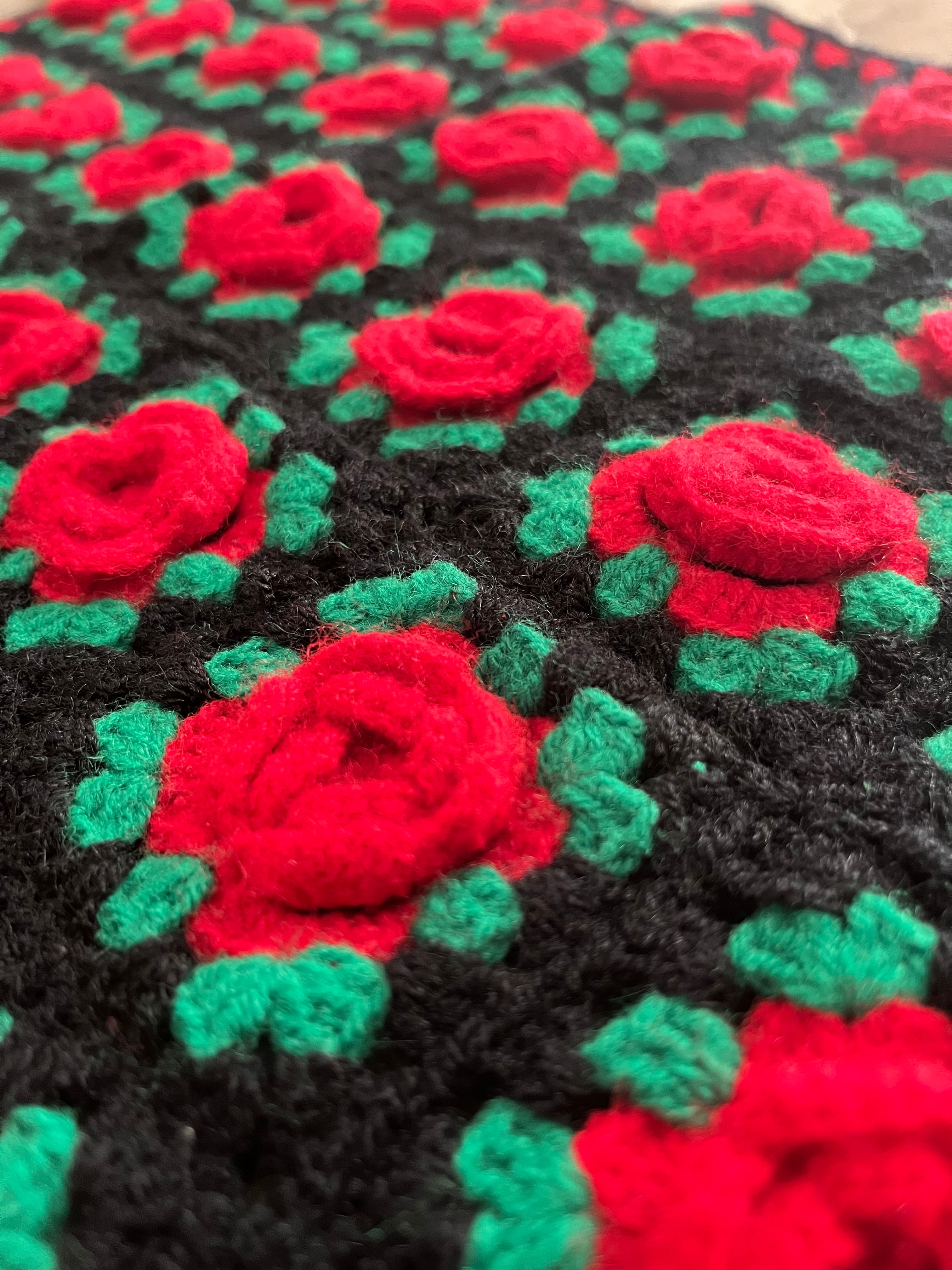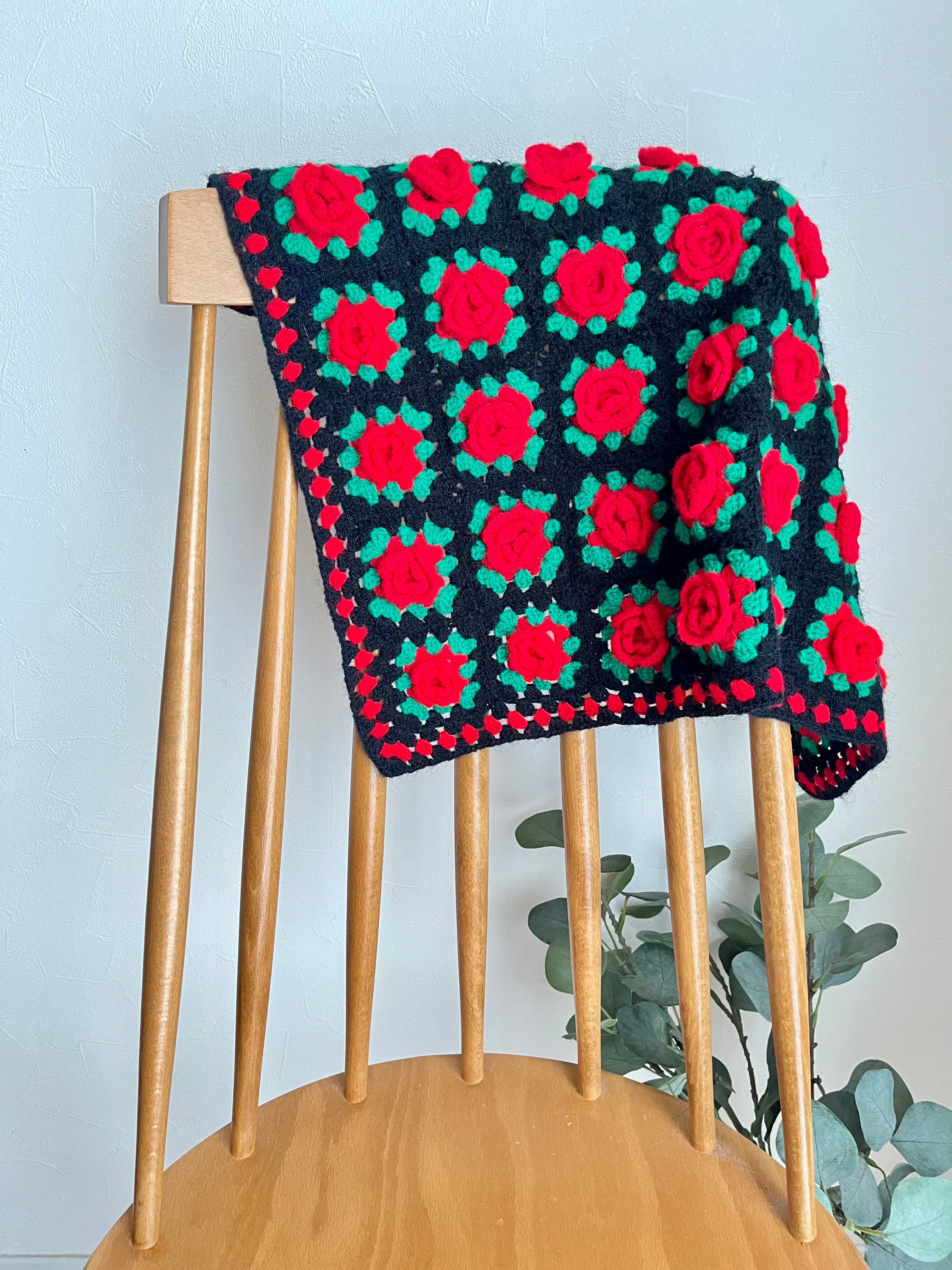 立体的な薔薇モチーフのニットマット 54×40cm ヴィンテージ ハンガリー