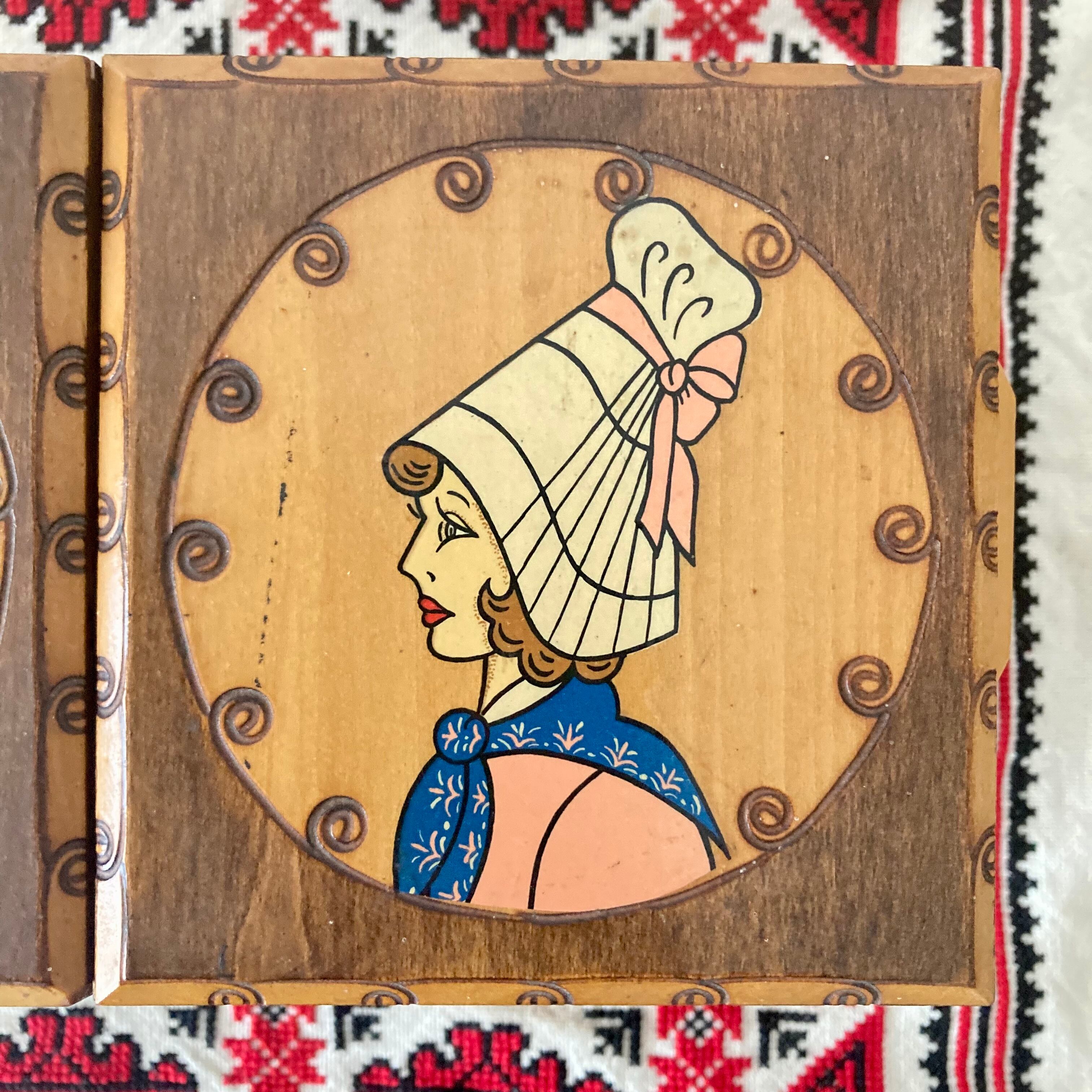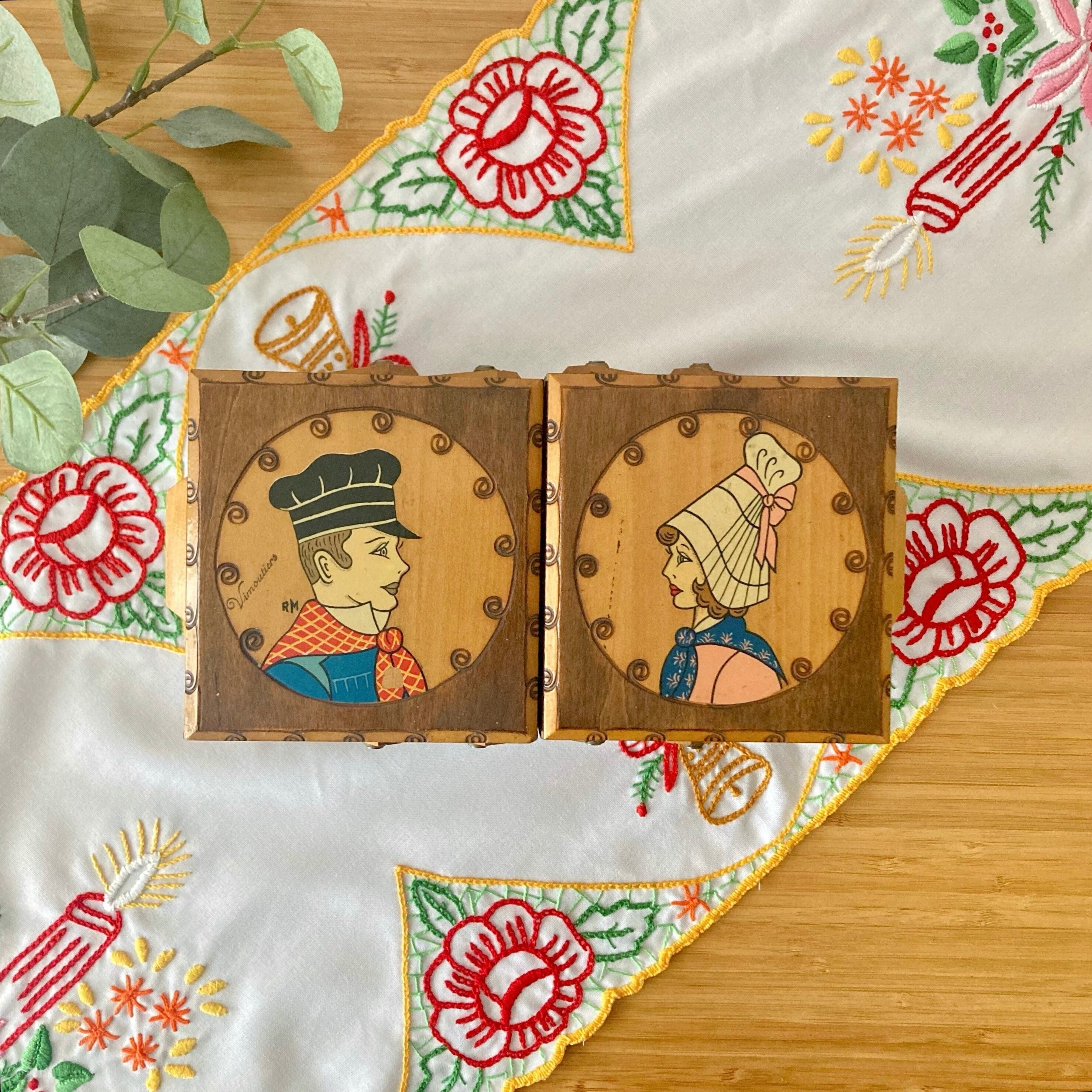 フランスはノルマンディーの民族衣装を着た男女のペイントが美しいアコーディオンタイプのソーイングボックス。