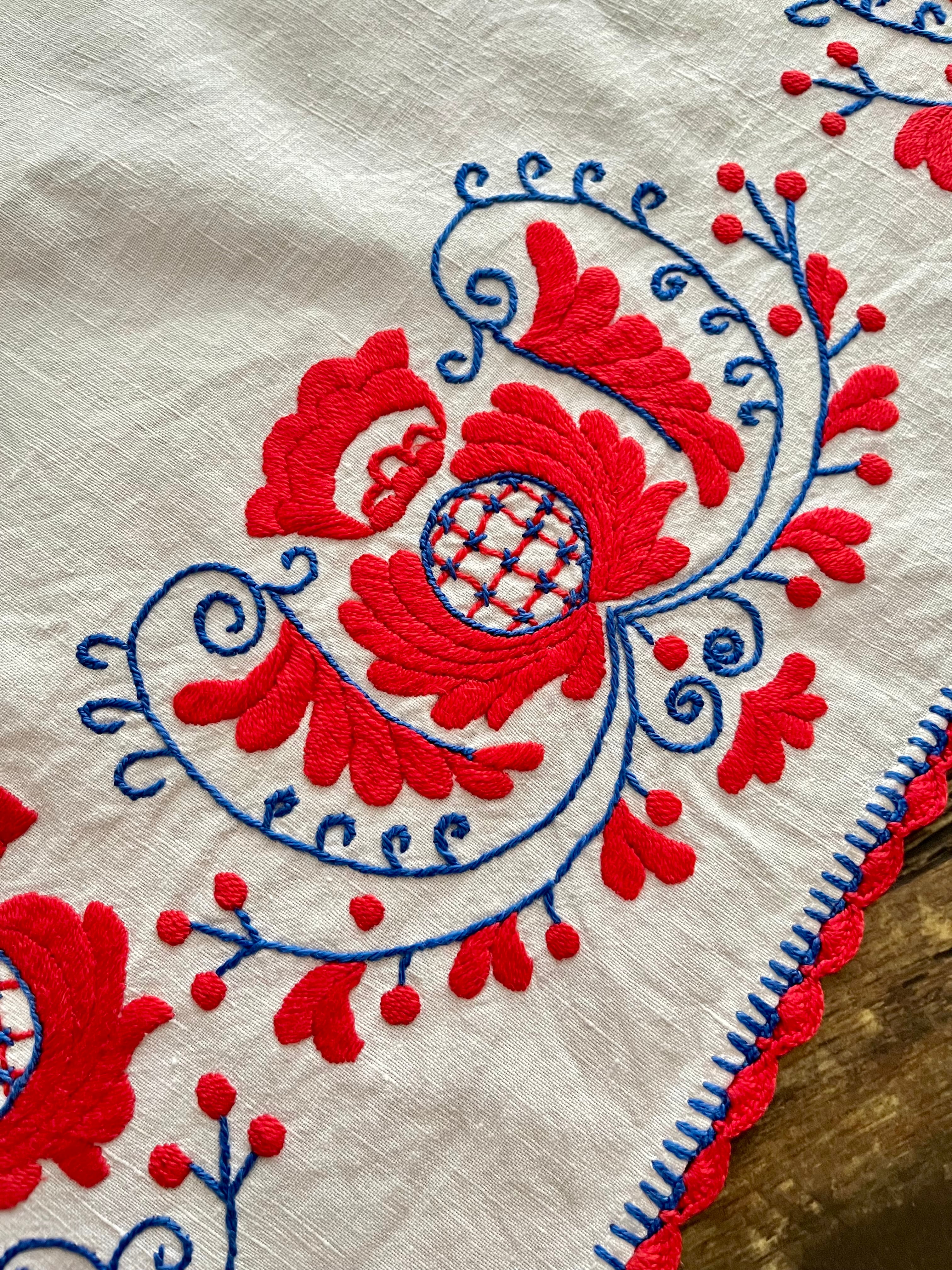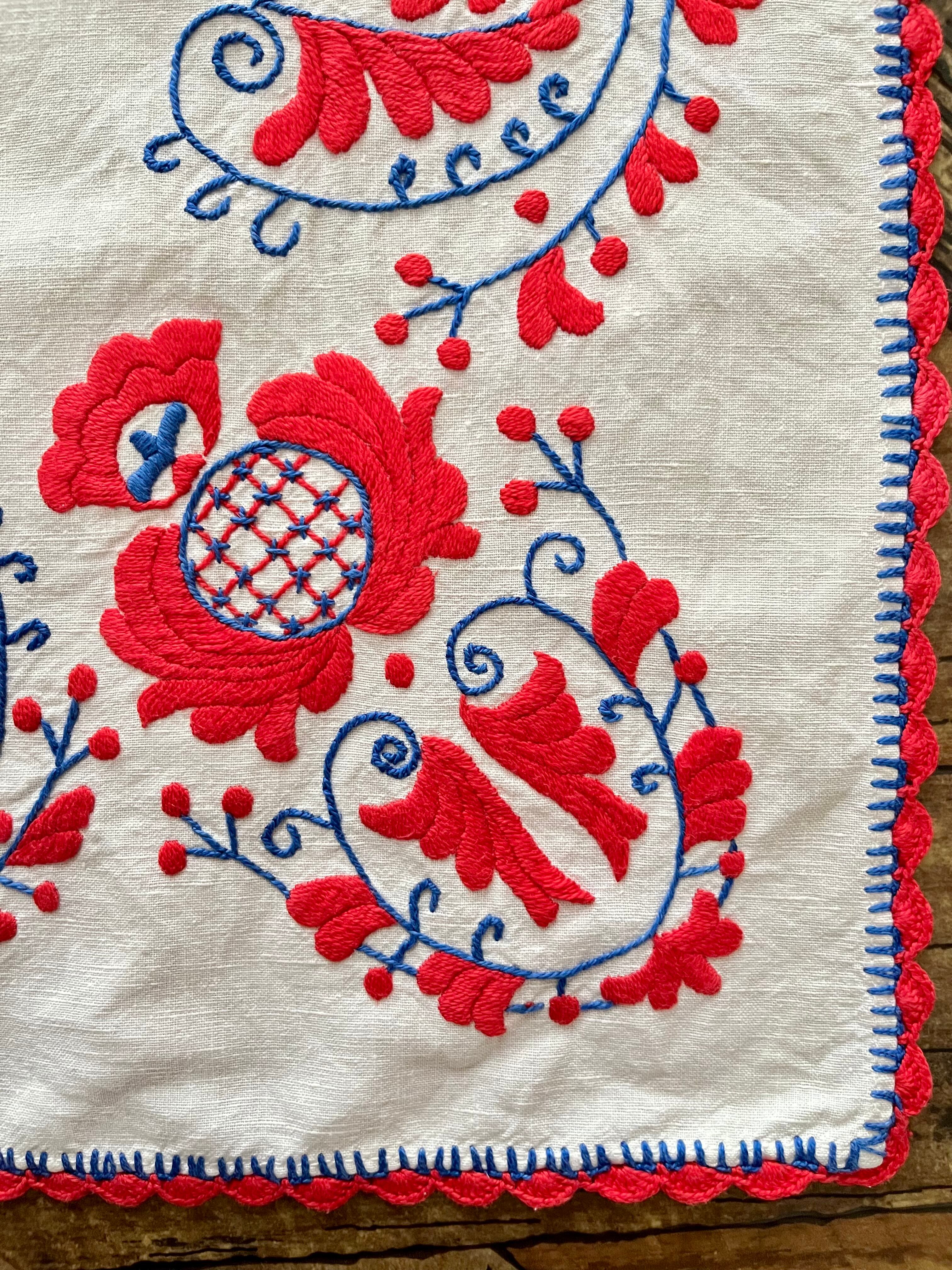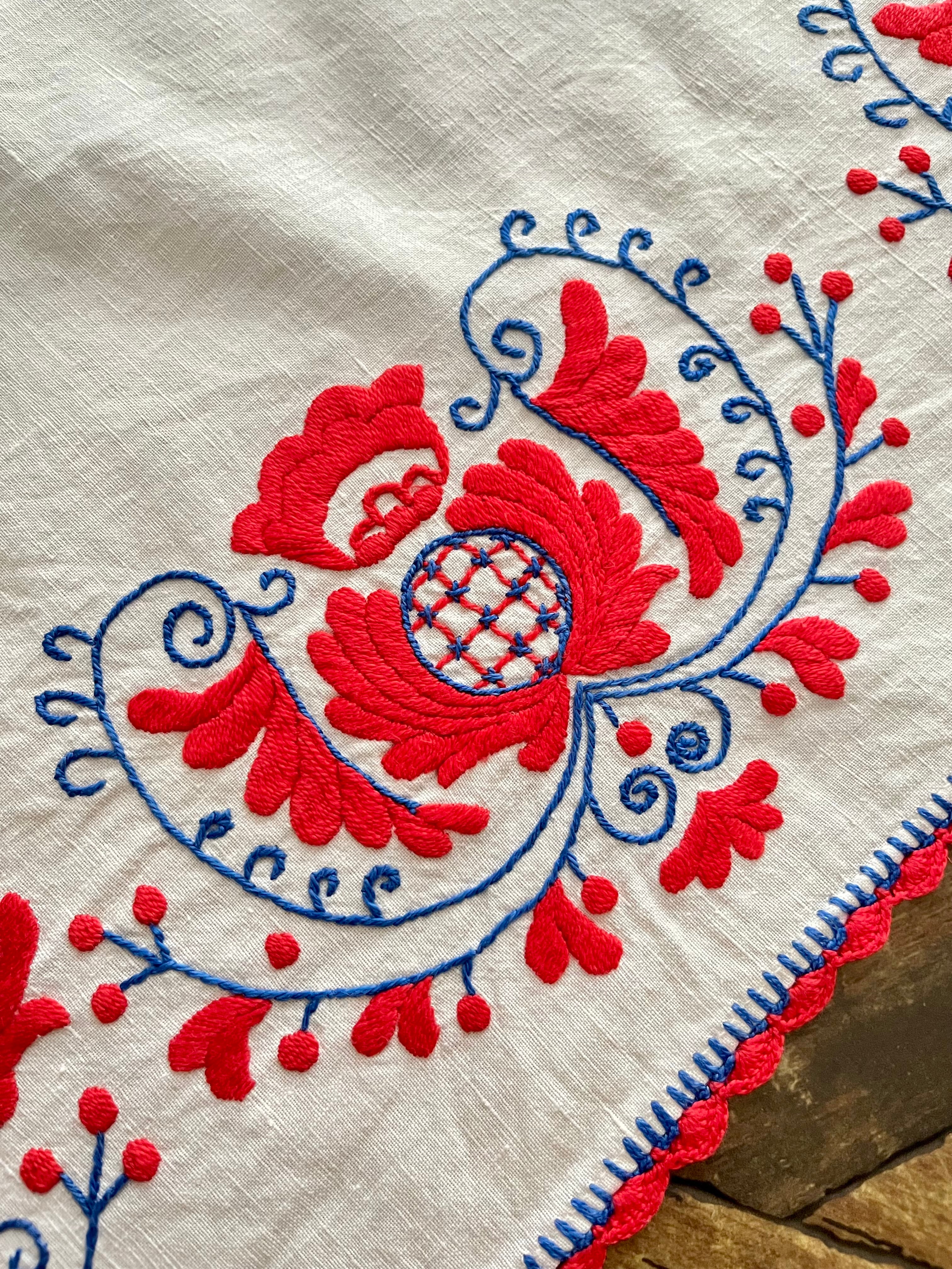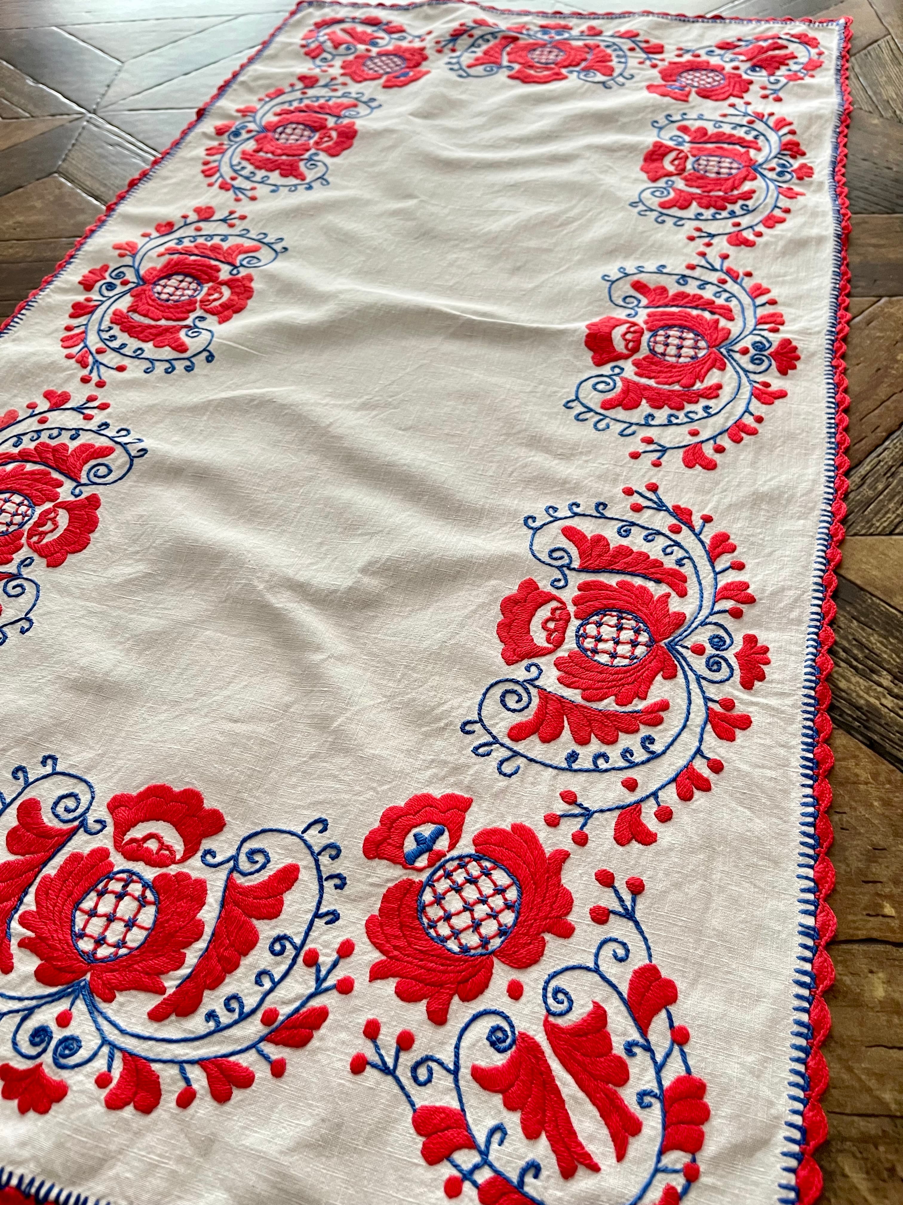 ハンガリー刺繍の大きめテーブルランナー 91.5×49 cm ヴィンテージ