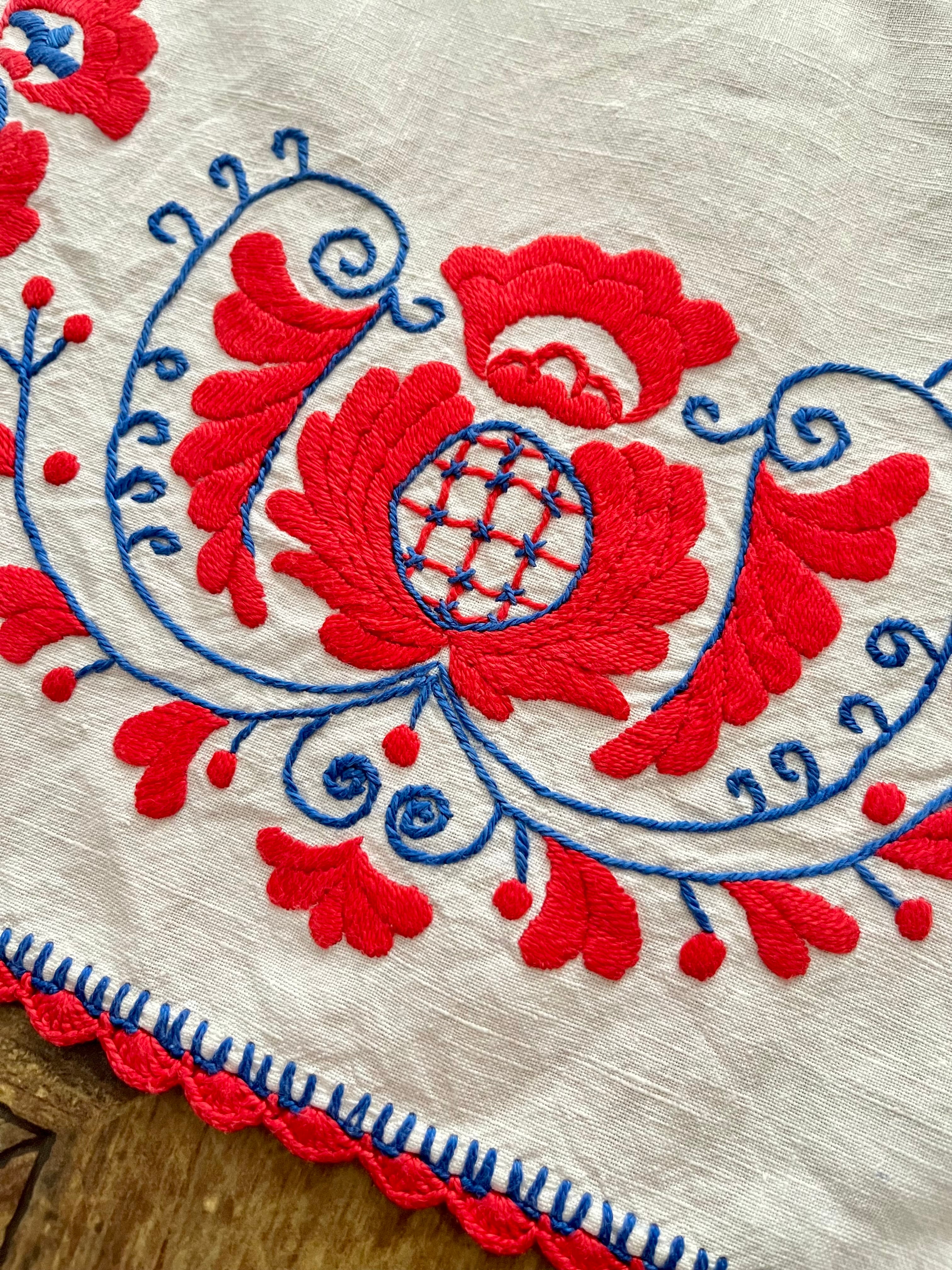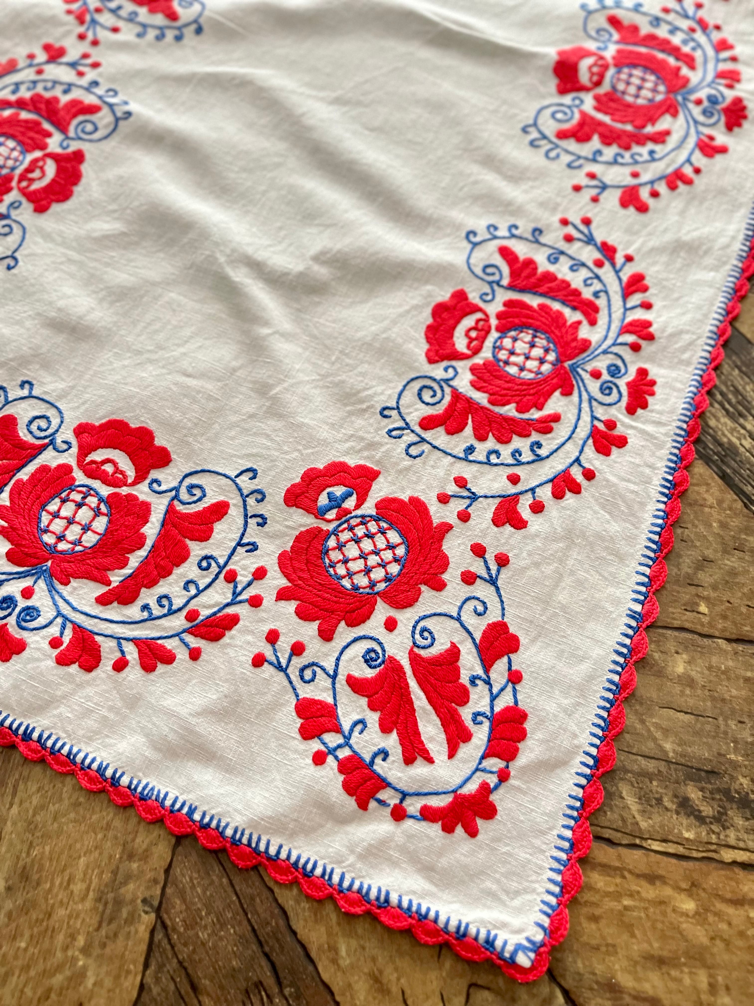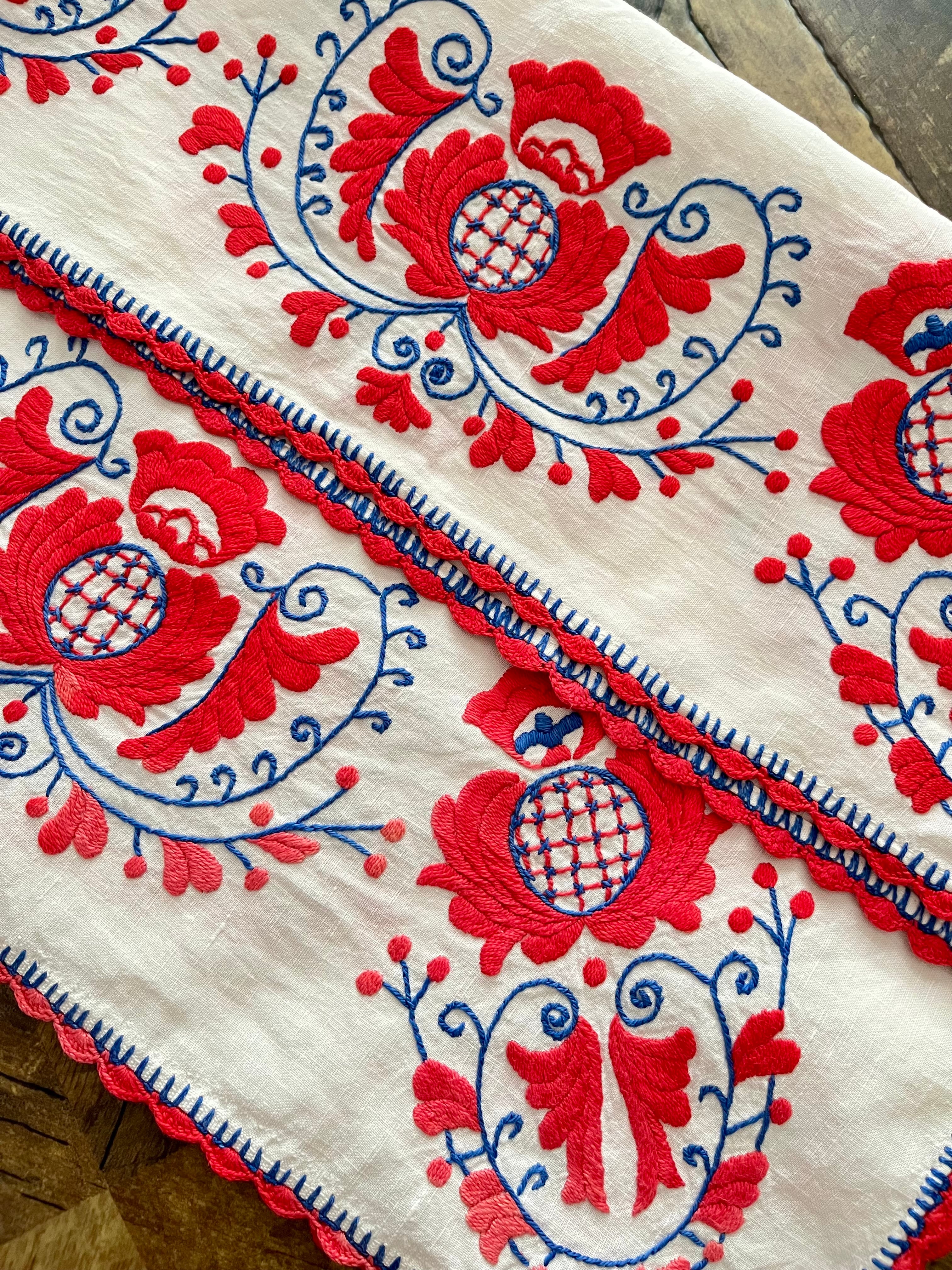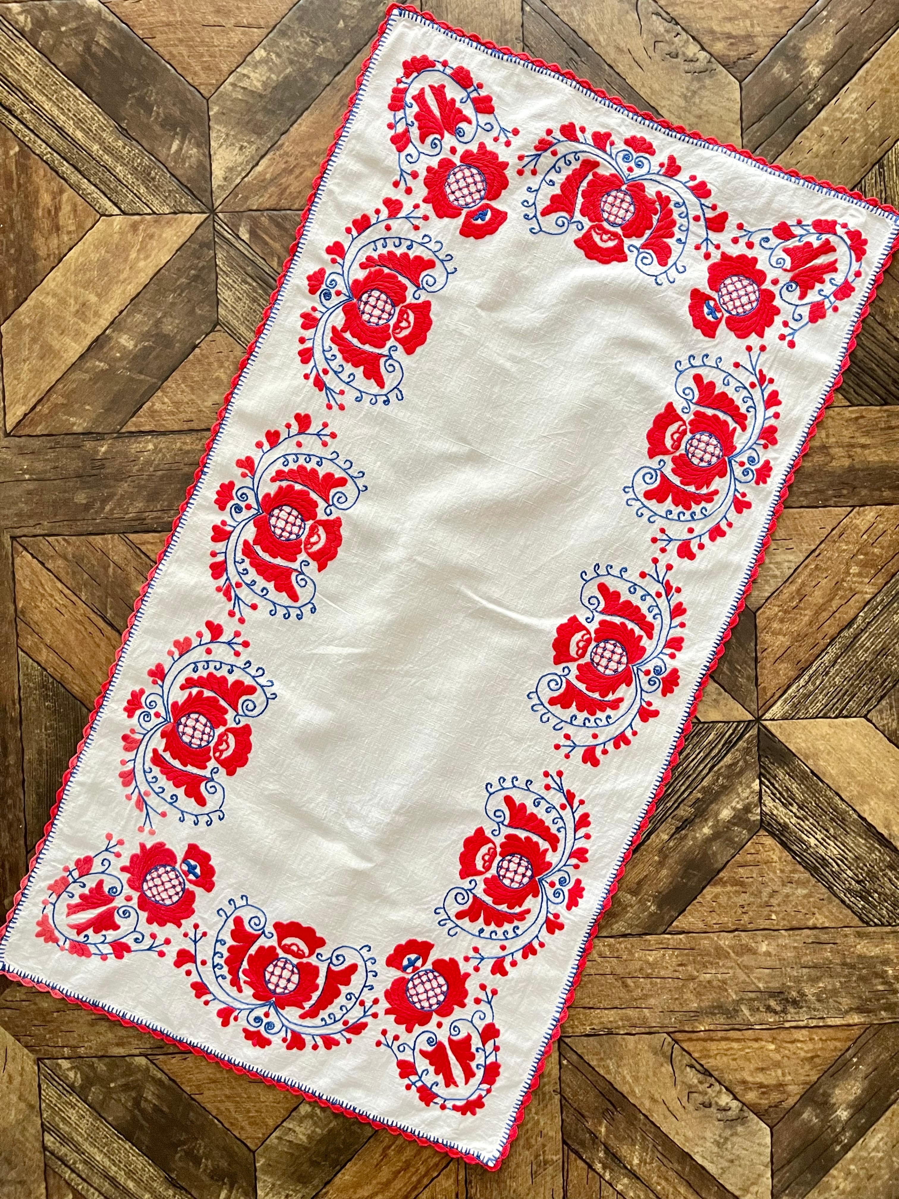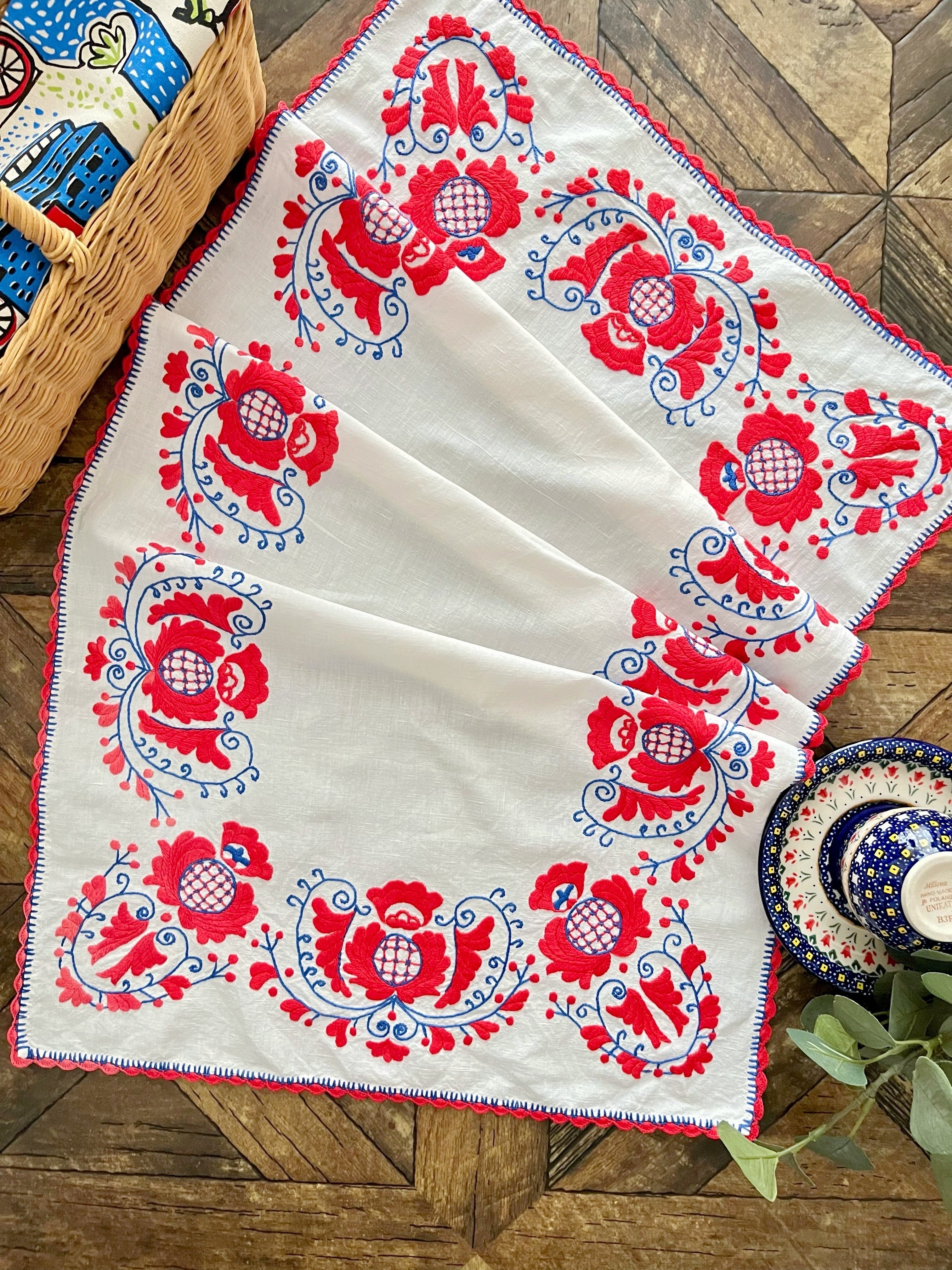 ハンガリー刺繍の大きめテーブルランナー 91.5×49 cm ヴィンテージ