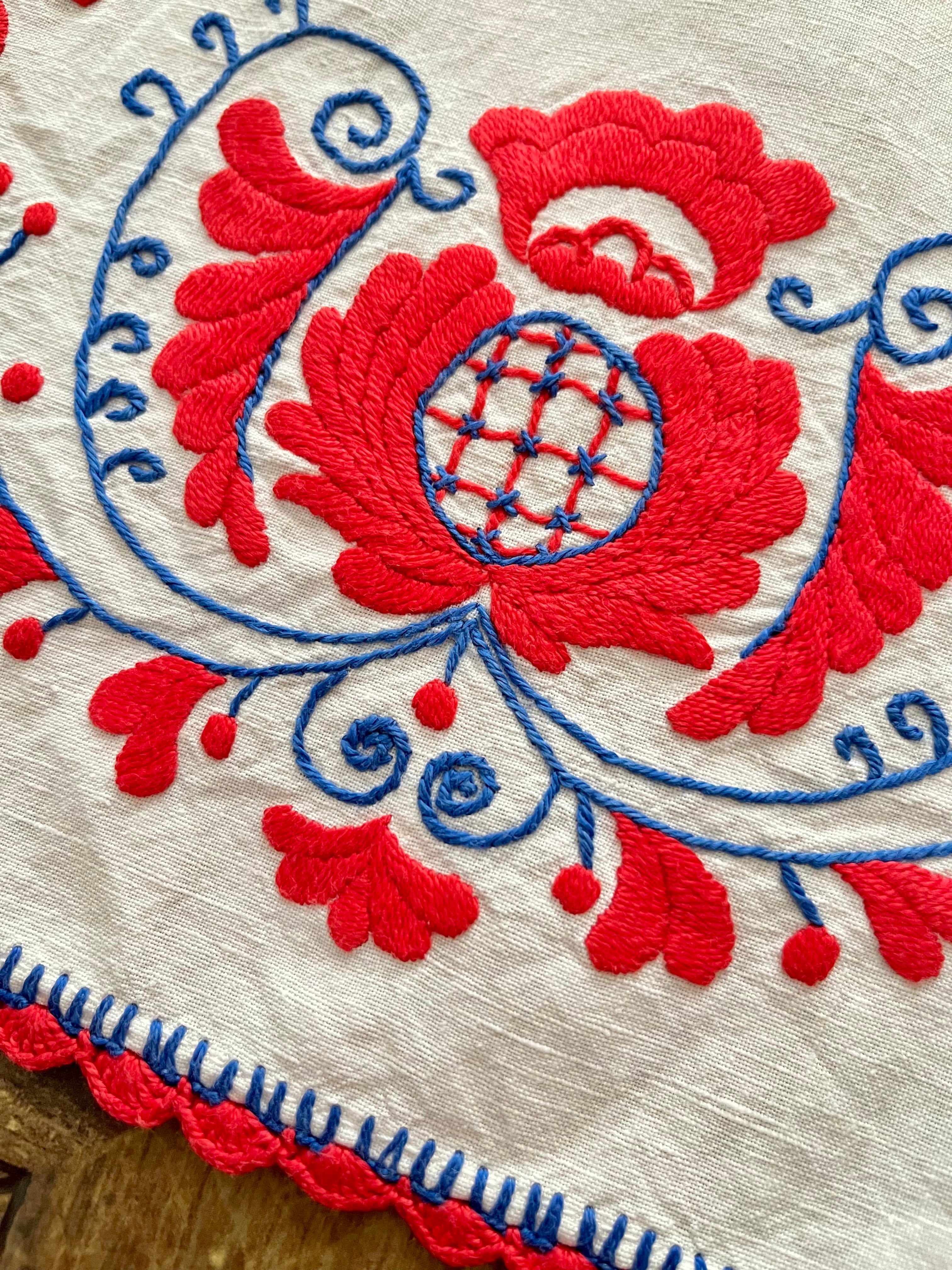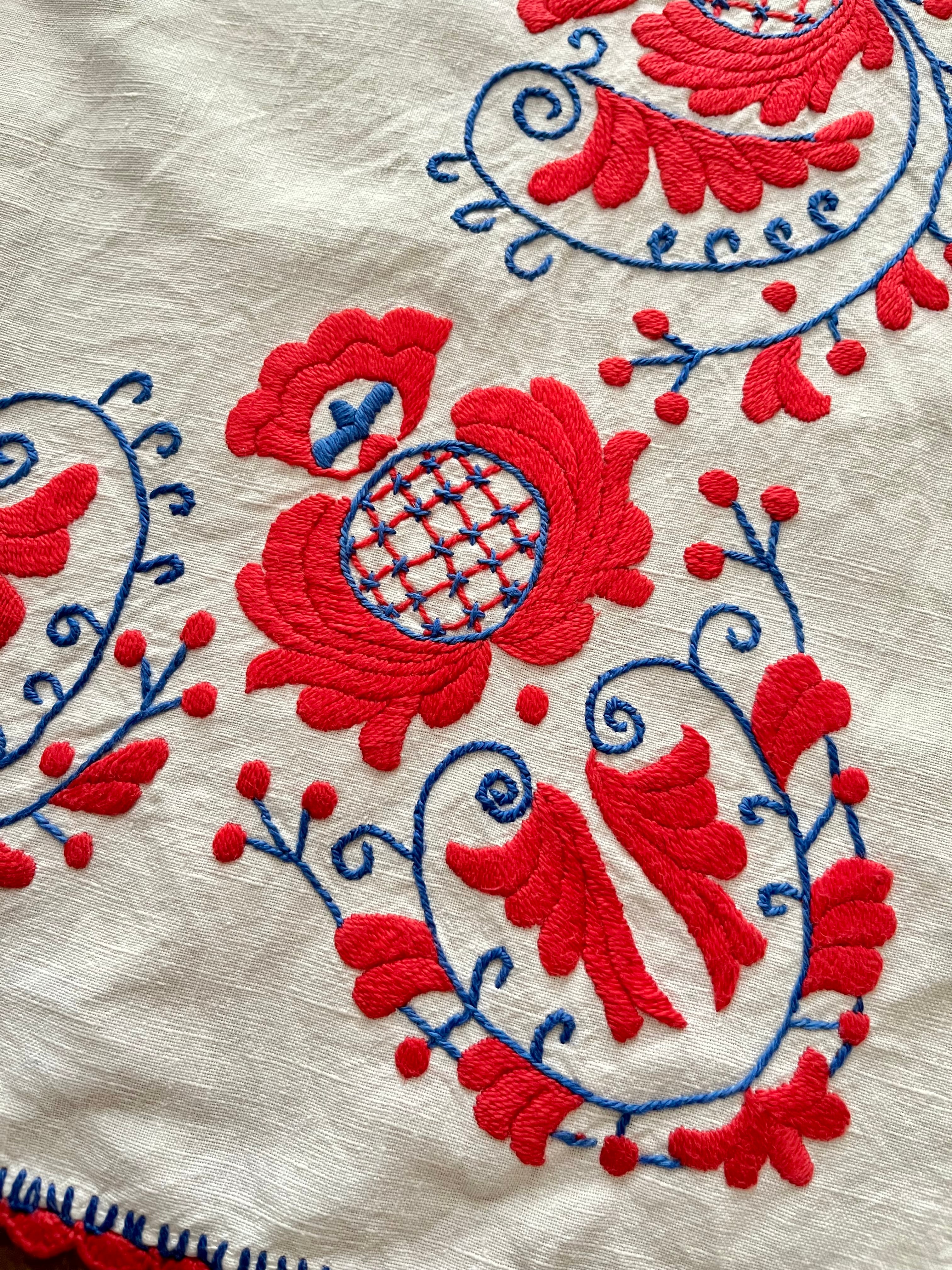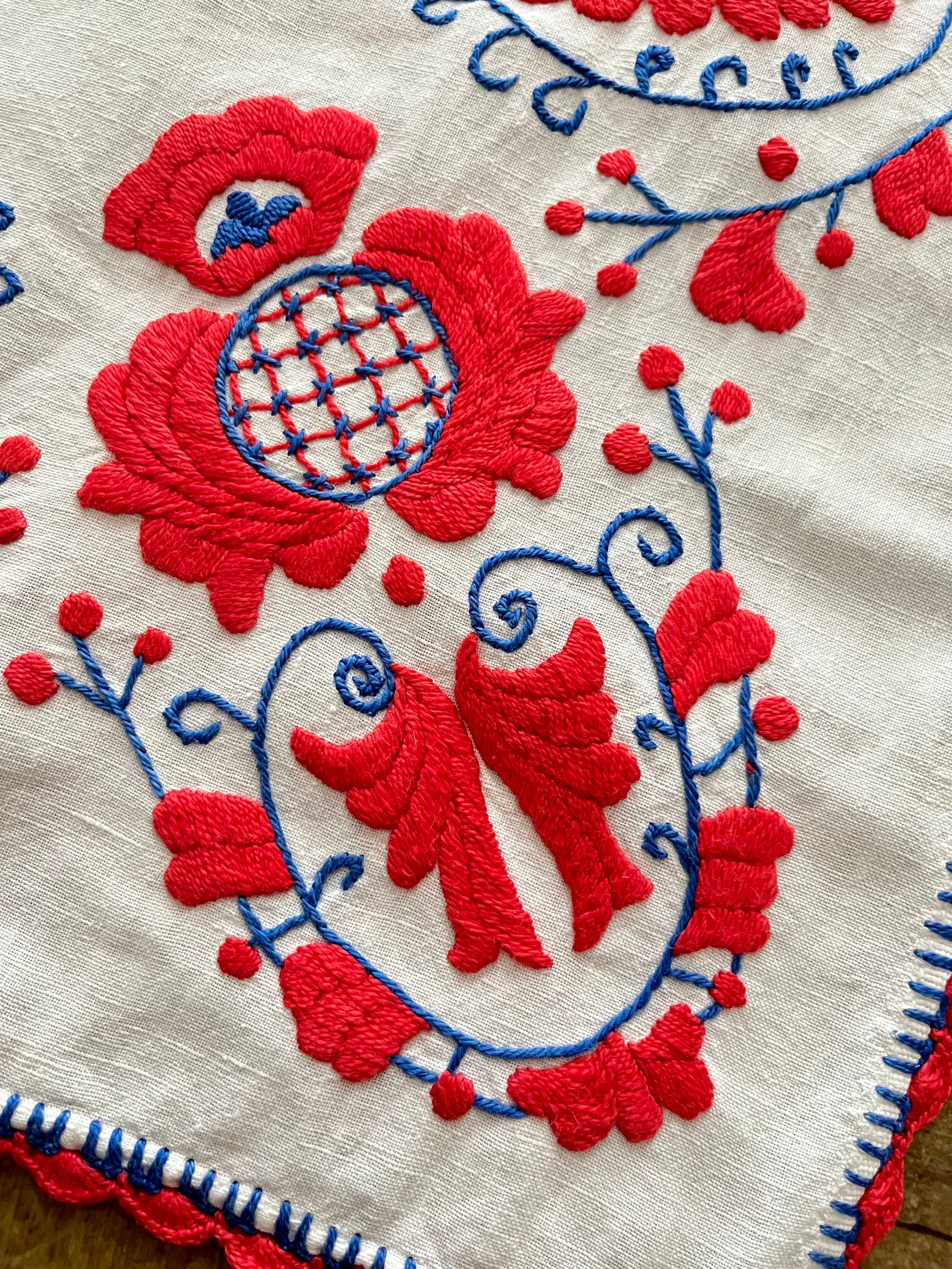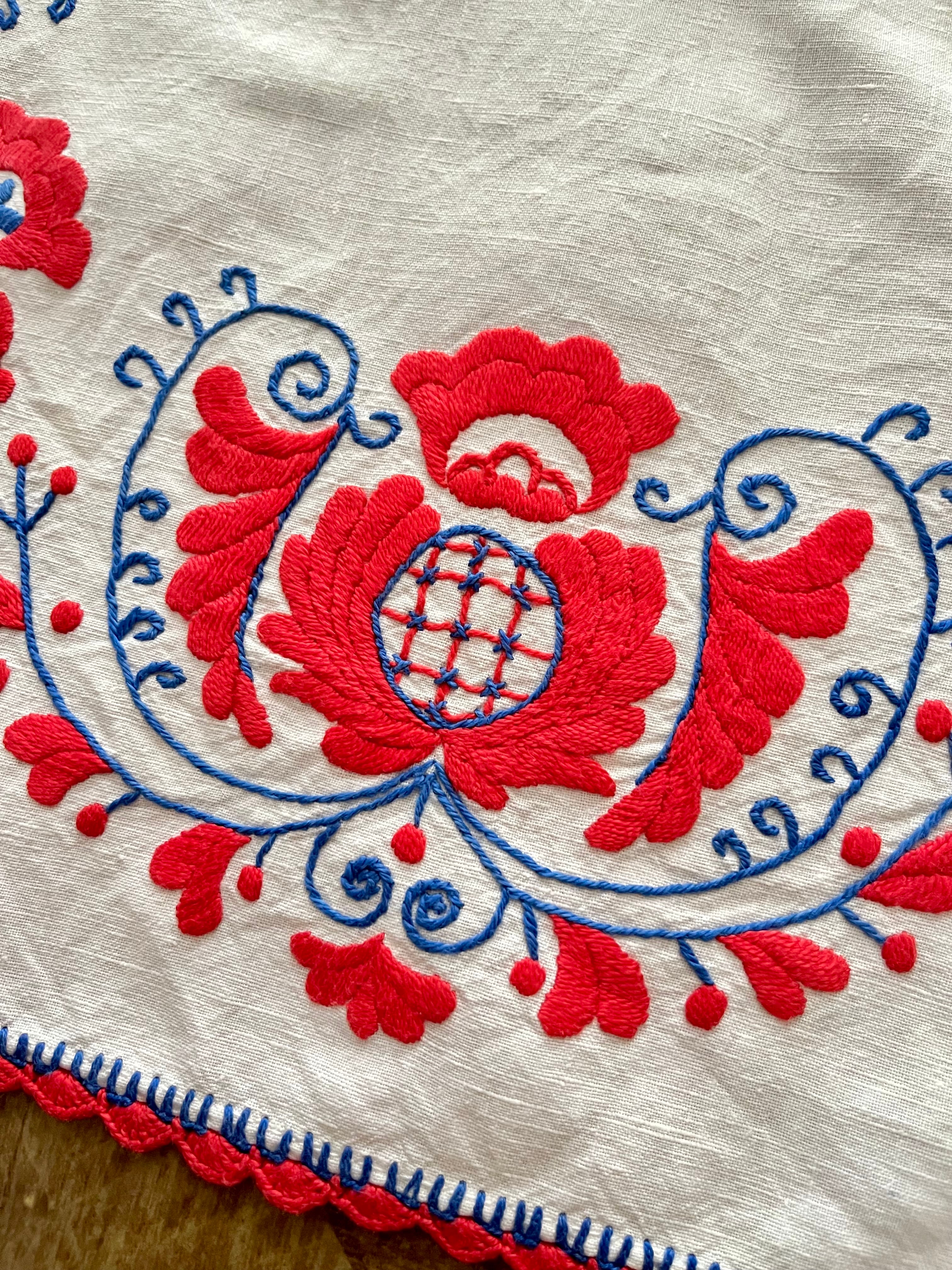 ハンガリー刺繍の大きめテーブルランナー 91.5×49 cm ヴィンテージ