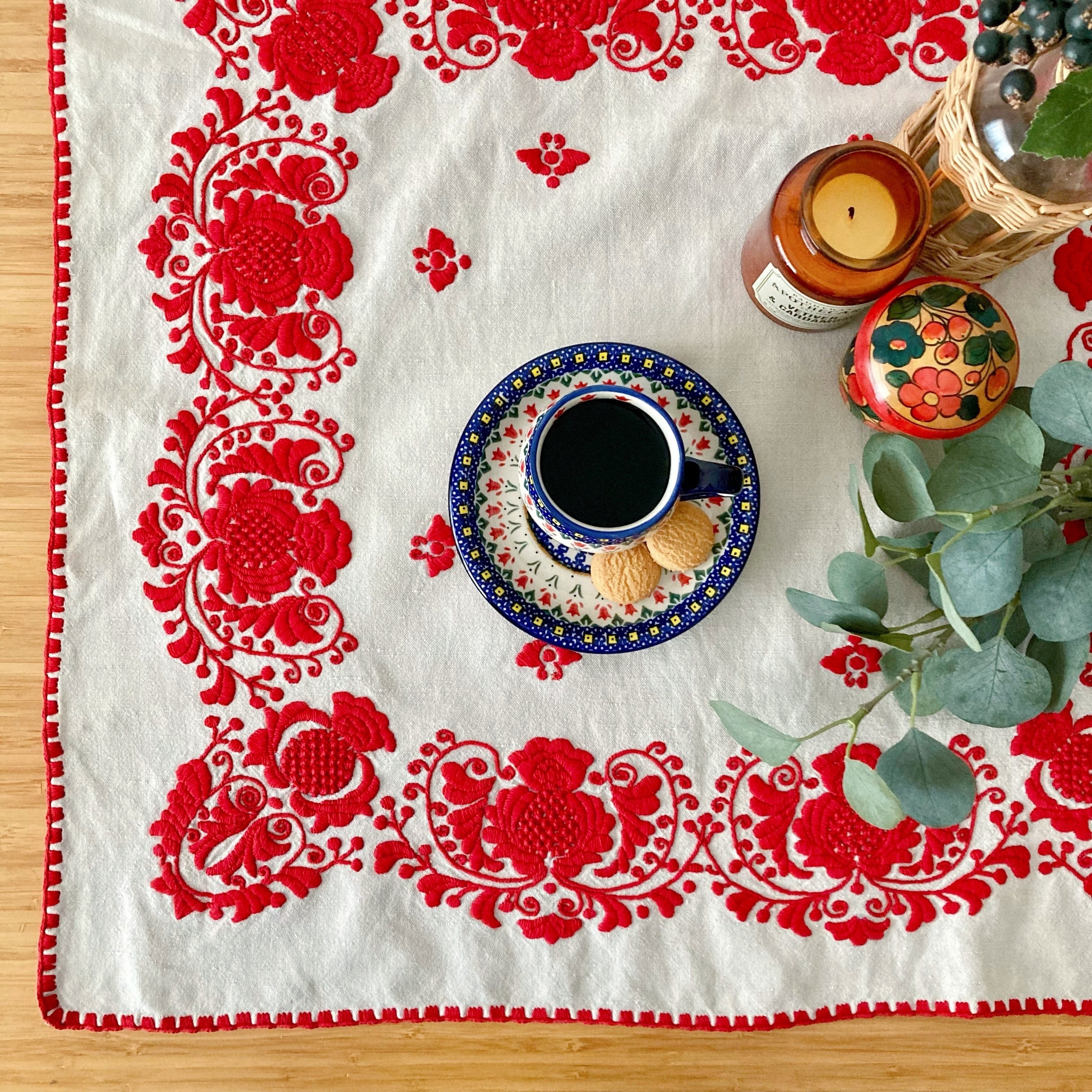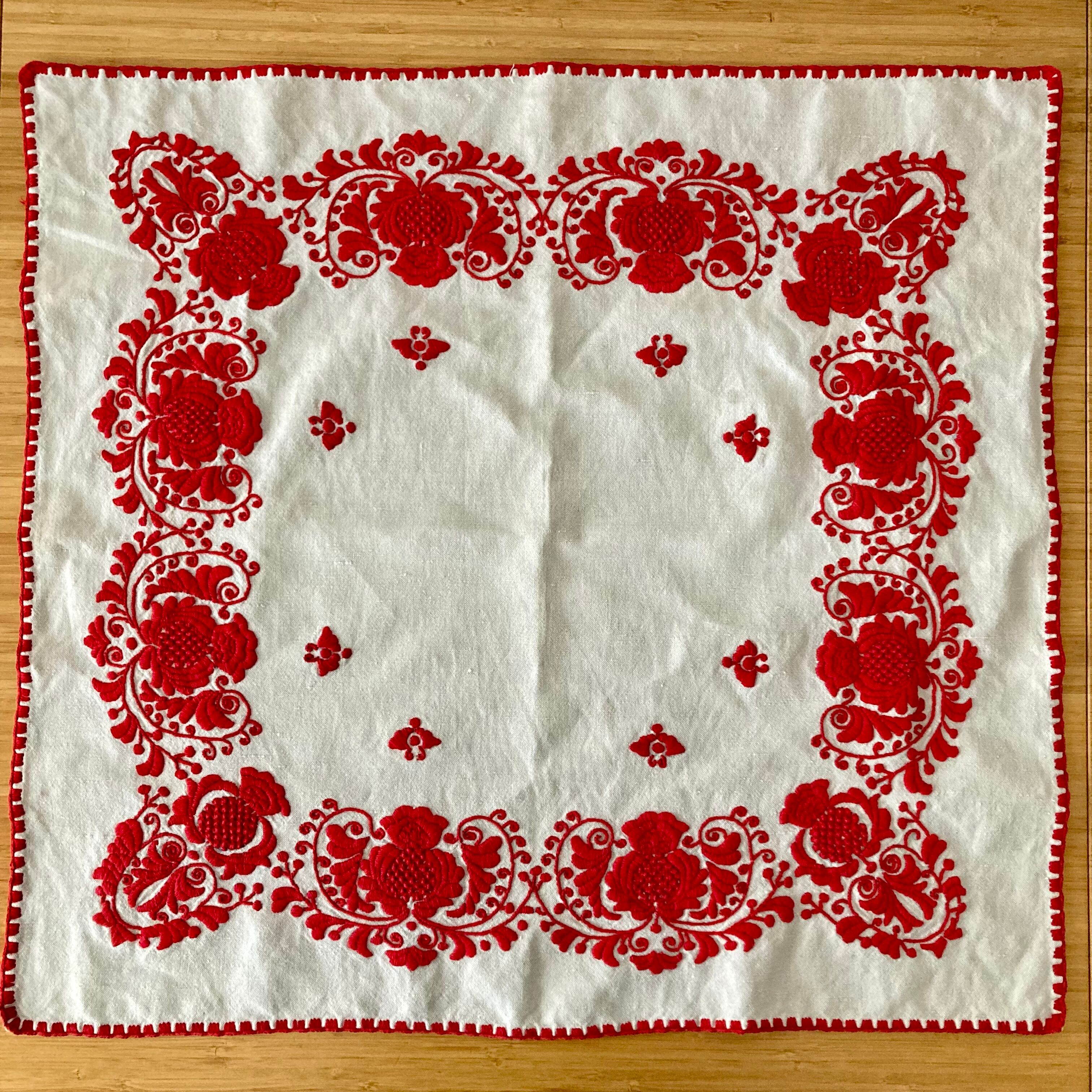 ハンガリー刺繍のテーブルクロス 71×65cm ヴィンテージ ラーバクズ刺繍