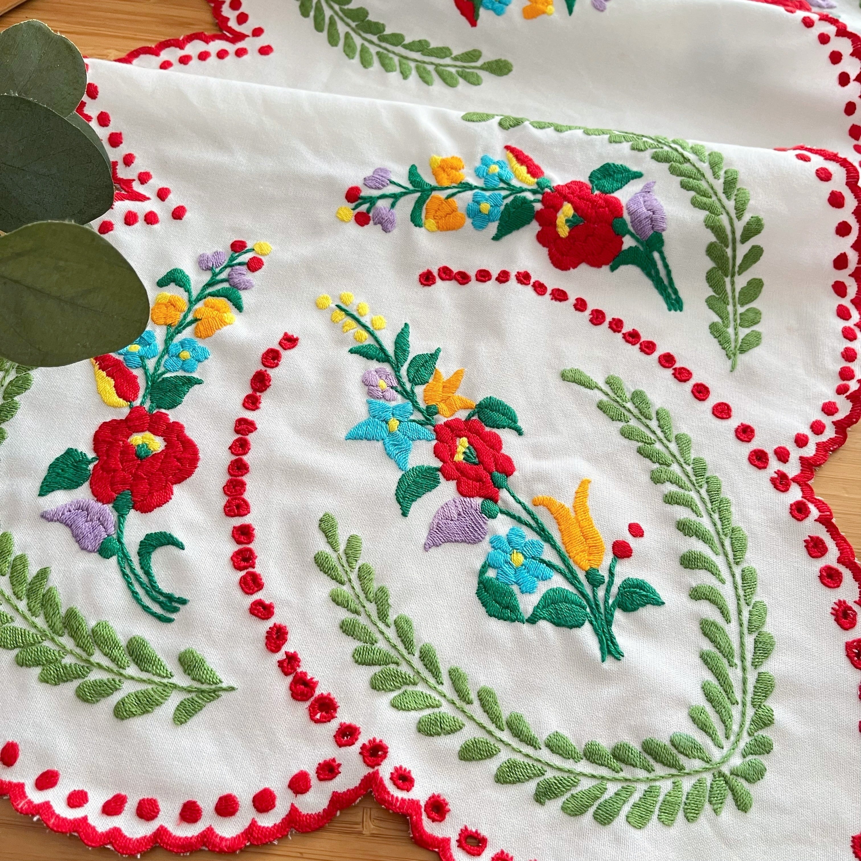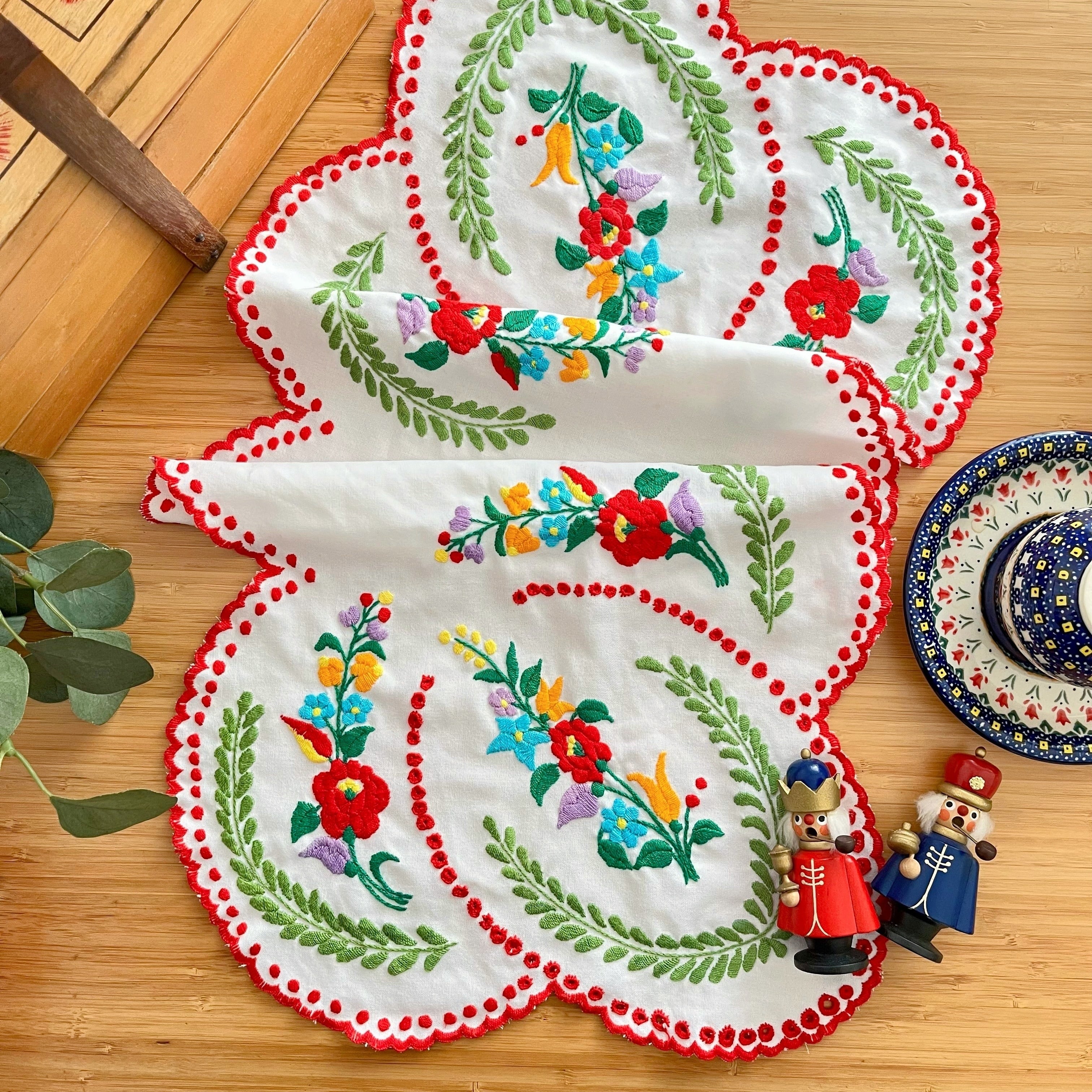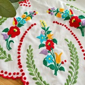 赤いドットのテーブルランナー ヴィンテージ カロチャ刺繍 75×36cm