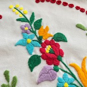 カロチャ刺繍に使用される糸(特に赤)は、稀に色移りすることがあります。